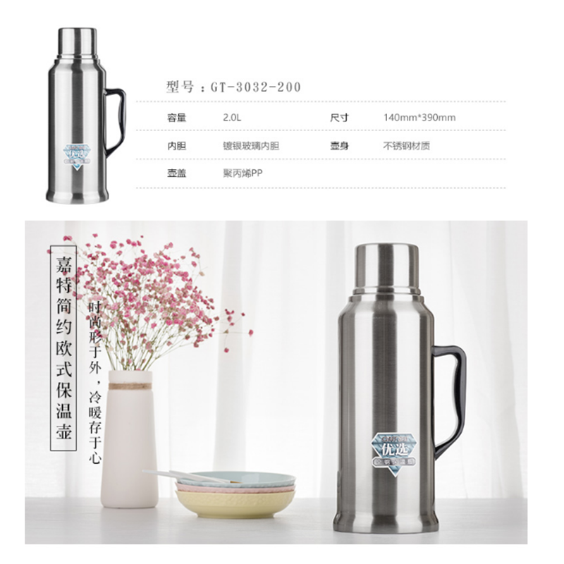 嘉特(GiNT) GT-3032-200 不銹鋼保溫瓶熱水瓶暖壺開(kāi)水瓶保溫壺 玻璃內(nèi)膽2l