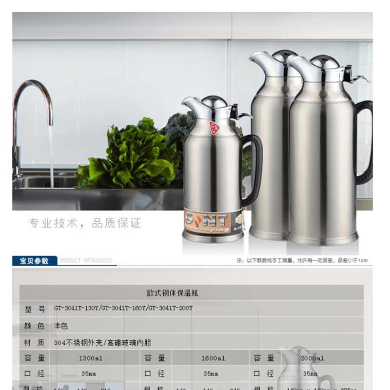 嘉特(GiNT) 3041-160 不銹鋼熱水瓶 鴨嘴保溫暖水壺 高硼玻璃內(nèi)膽家用 開水保溫壺