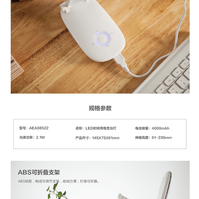 4000mA大容量充電寶,電量指示燈,隨時查看電量,可折疊結(jié)構(gòu),攜帶方便,LED照明功能 ?