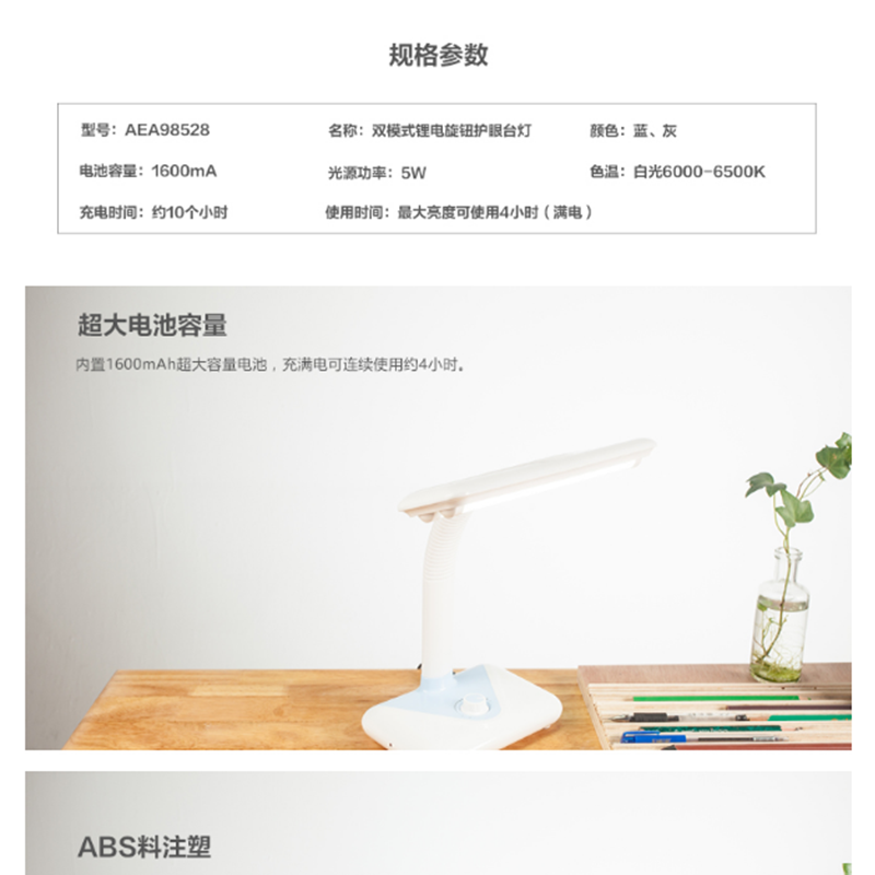 雙模式供電,切換自如,雙管柔光燈罩,光線更柔和,旋鈕無極調光LED ?