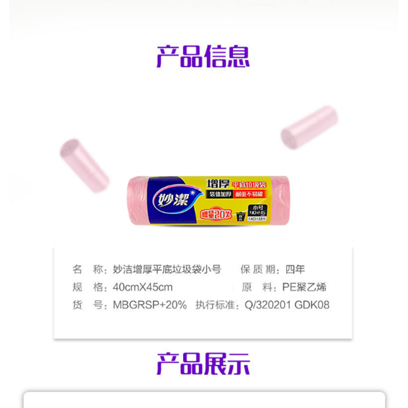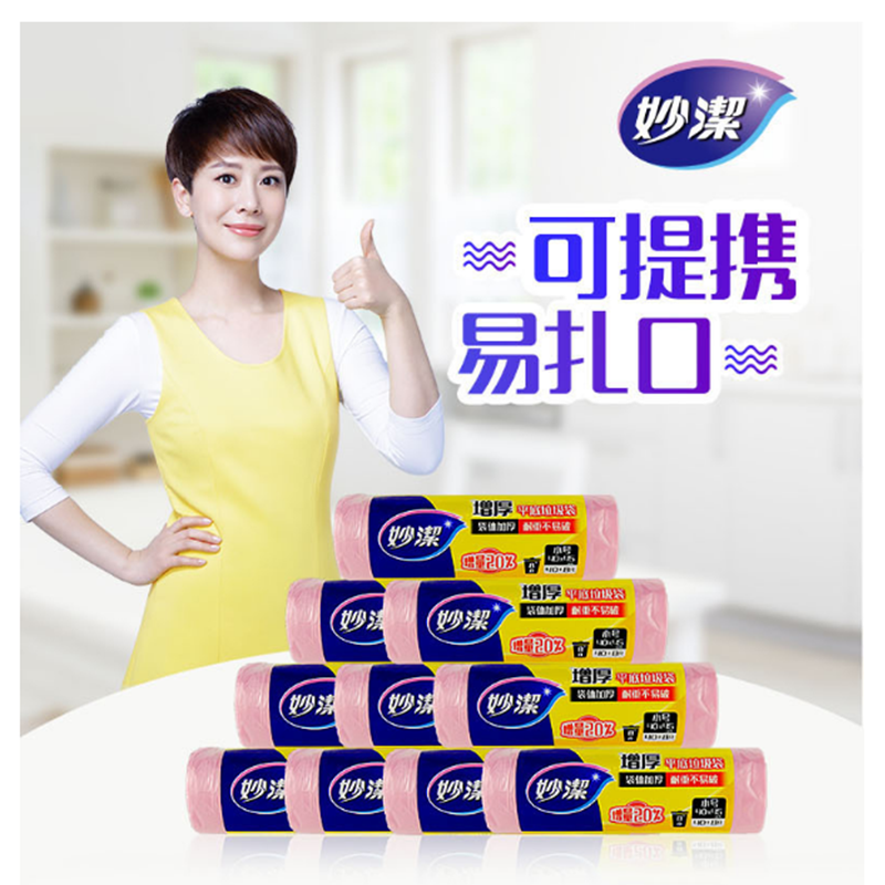 妙潔(MIAOJIE) 小(S)粉色 點斷式垃圾袋 40*45cm