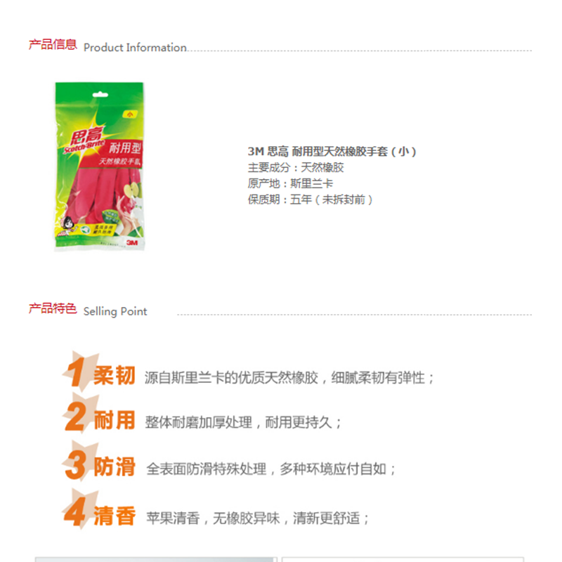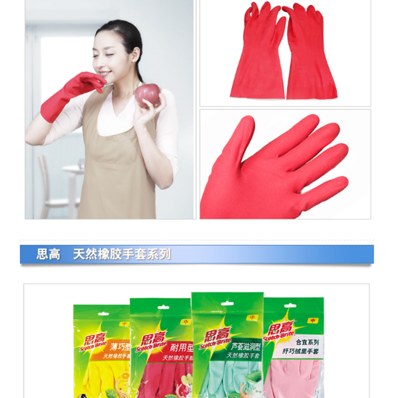 3M思高((Scotch)) 耐用型家務(wù)手套 小號(hào) 橡膠手套 紅色清新