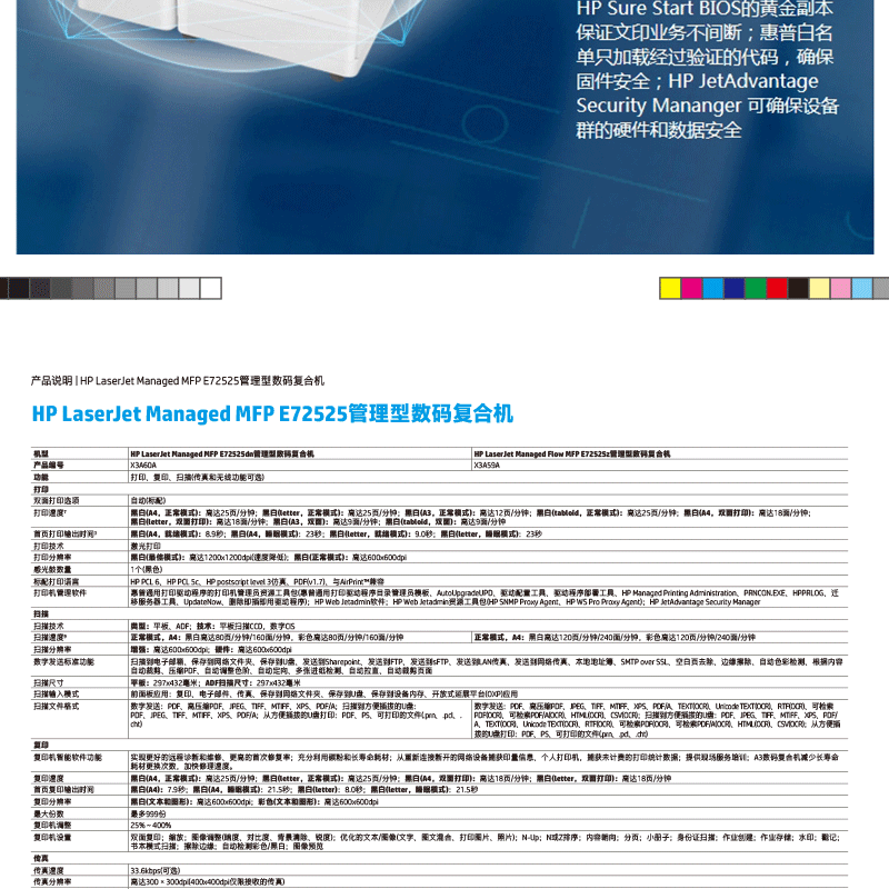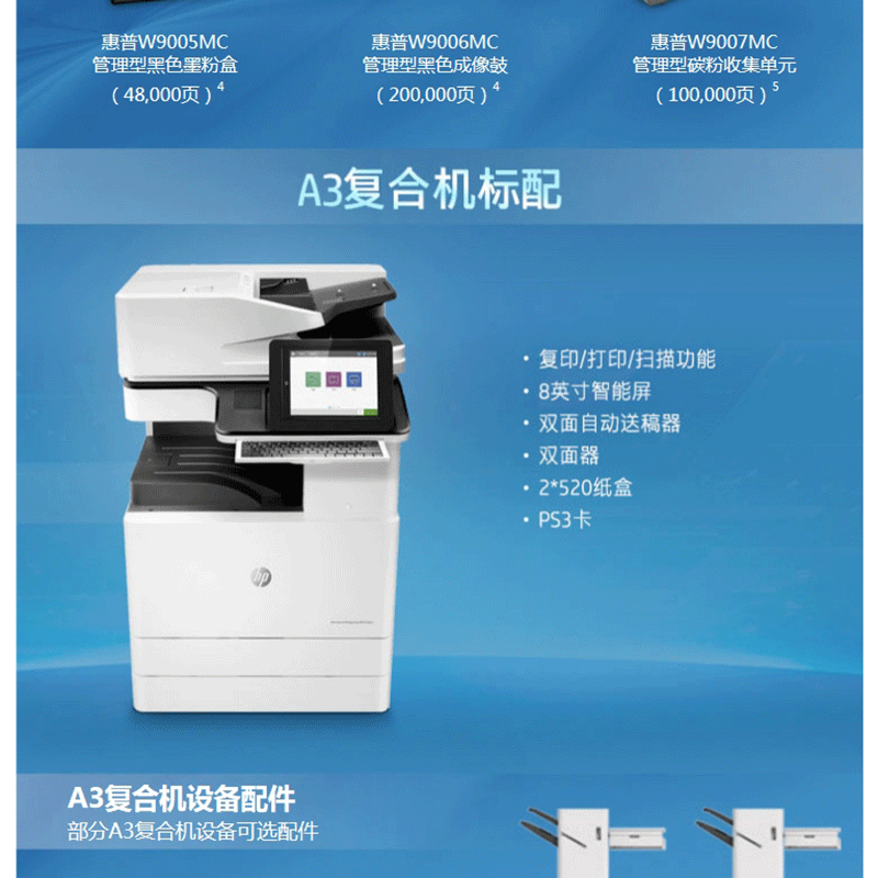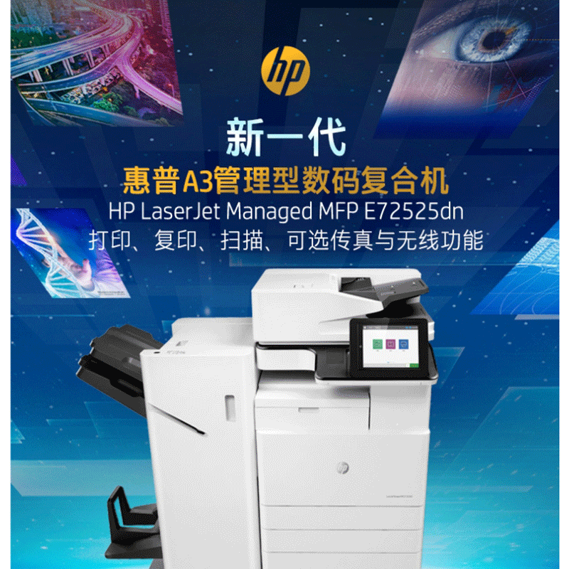 惠普(HP) LaserJet Managed Flow MFP E72525dn A3幅面管理型數(shù)碼 黑白激光多功能一體機(jī)(打印/復(fù)印/掃描)