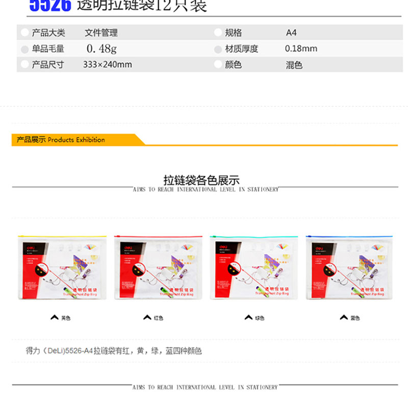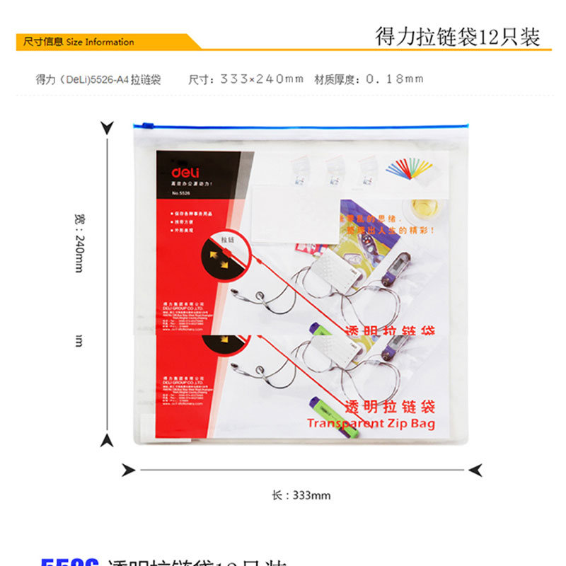 得力(deli) 5526 A4透明拉鏈袋/文件袋/資料袋 12個/包