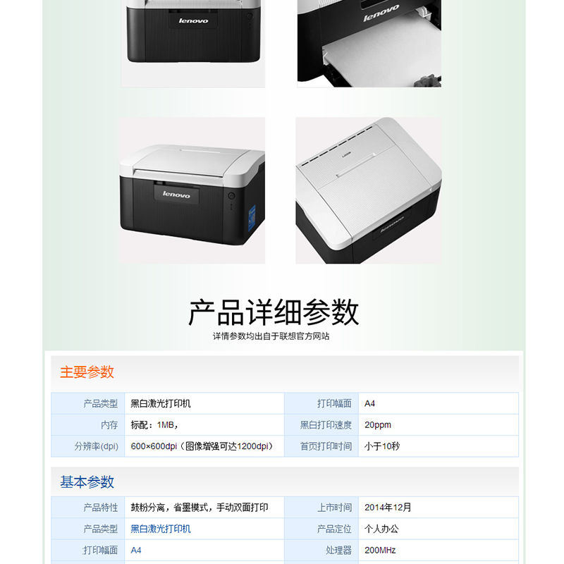 聯(lián)想(Lenovo) LJ2206 黑白激光打印機(jī) A4幅面