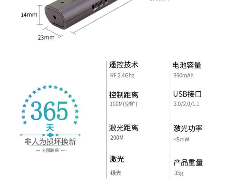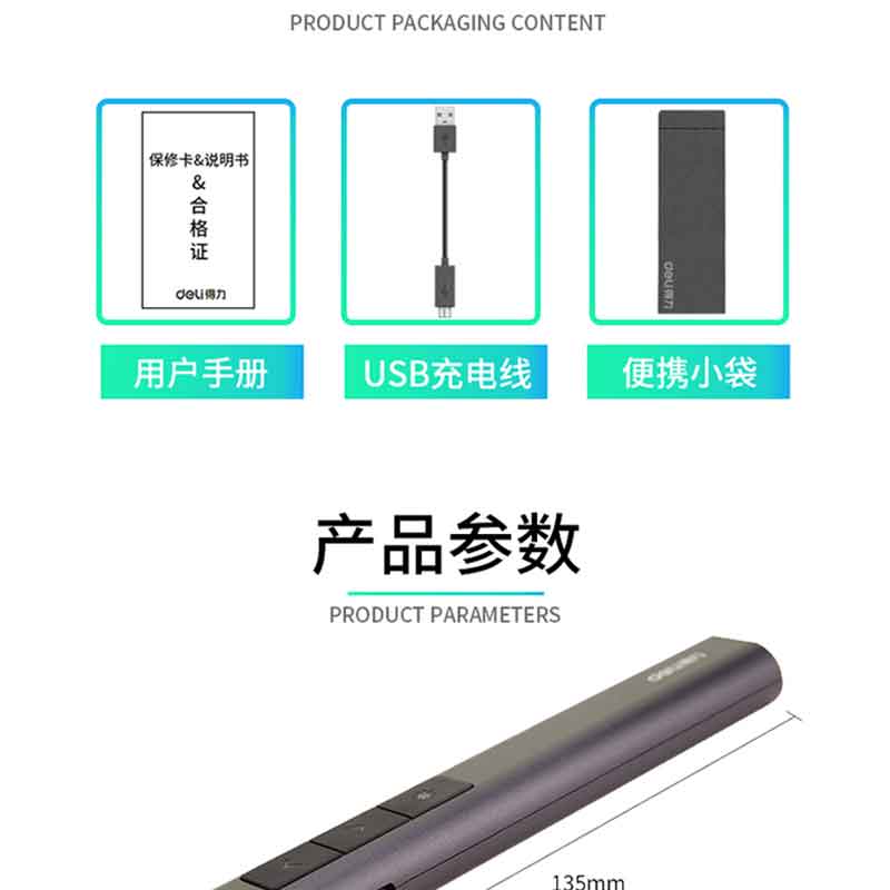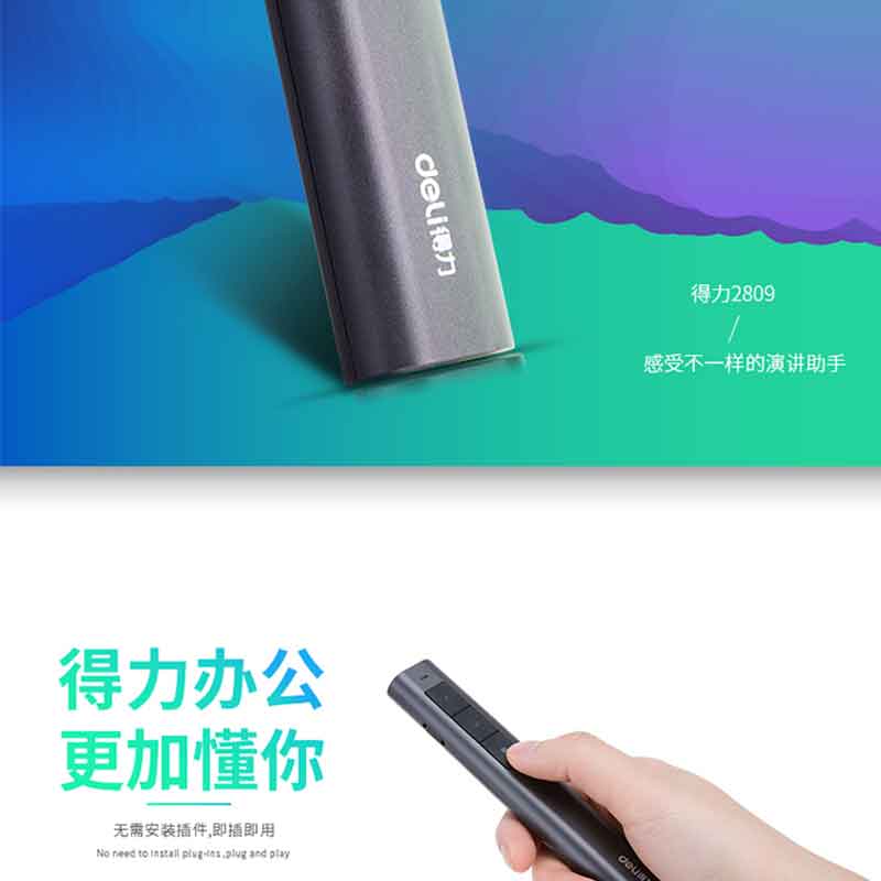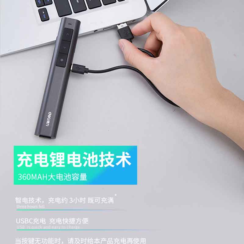 得力(deli) 2809 可充電激光無線演示器 PPT激光翻頁筆