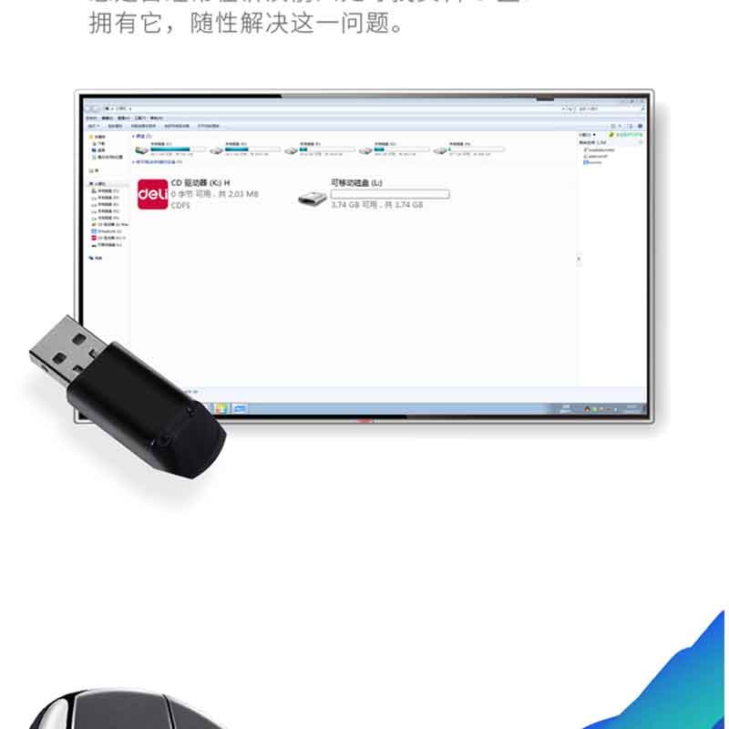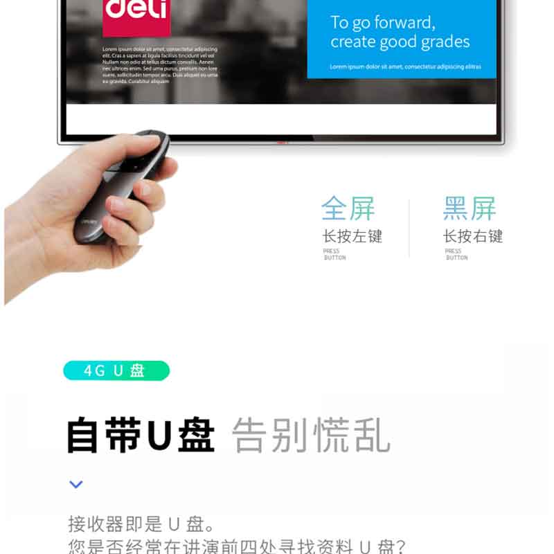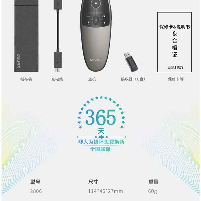 得力(deli) 2806 可充電空中飛鼠激光筆/PPT翻頁筆/電子教鞭 4GB接收U盤 紅光