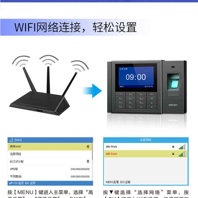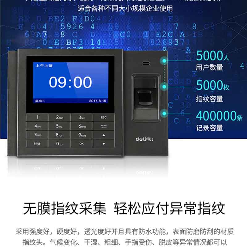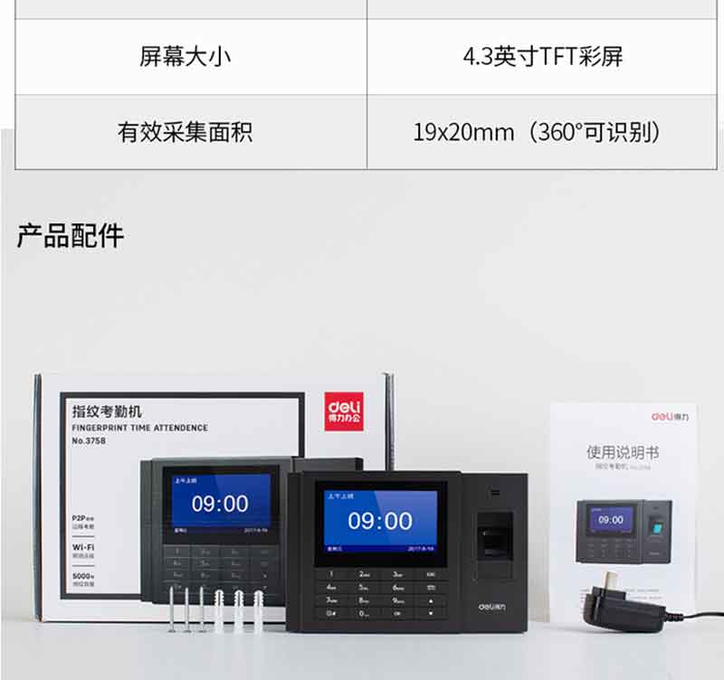 得力(deli) 3758 智能互聯(lián)網(wǎng)考勤機 指紋 異地 分店考勤統(tǒng)一管理 WiFi連接入網(wǎng)