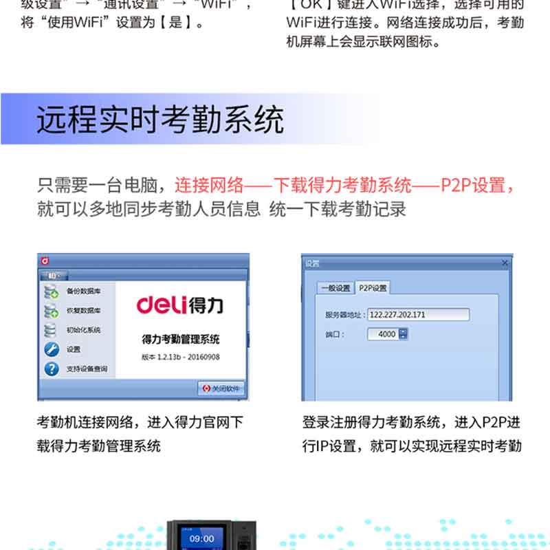 WIFI網(wǎng)絡(luò)鏈接,輕松設(shè)置、遠程實時考勤系統(tǒng) ?