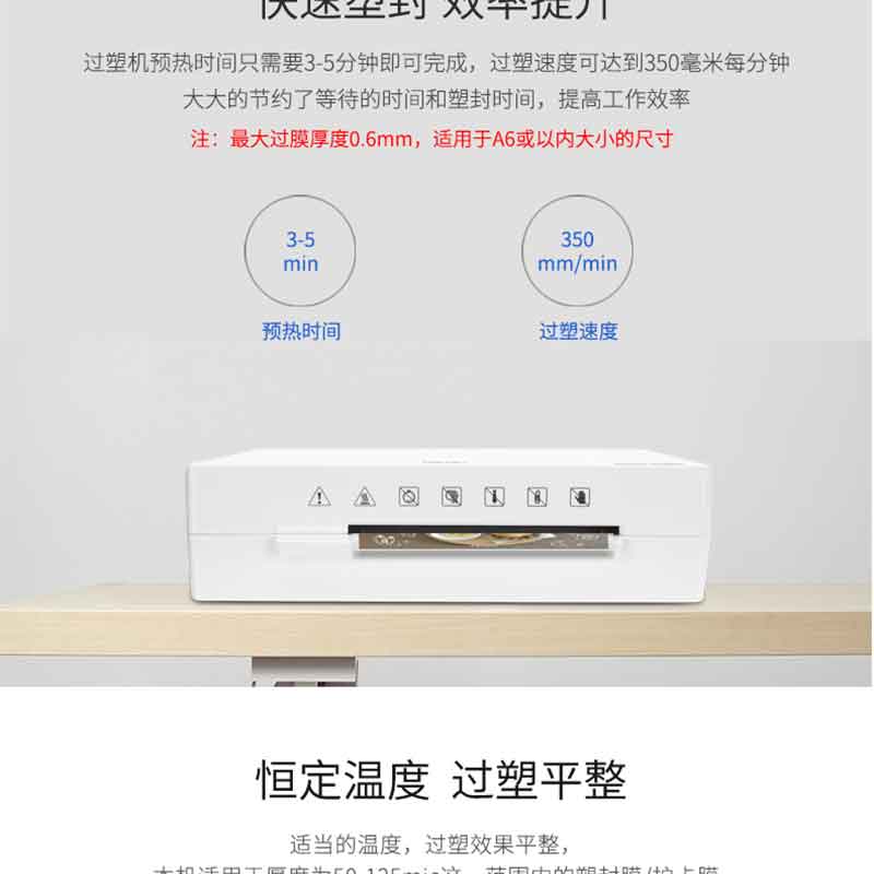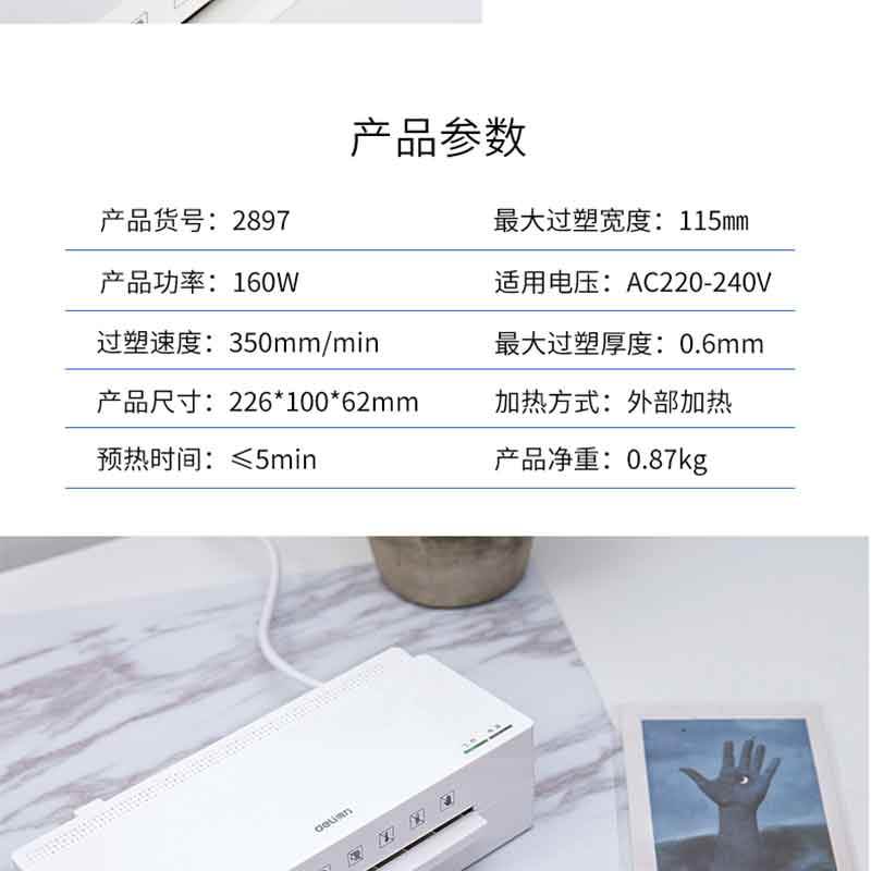 得力(deli) 2897 A6塑封機 照片塑封辦公家用小型過塑機熱塑冷裱壓膜機 白色