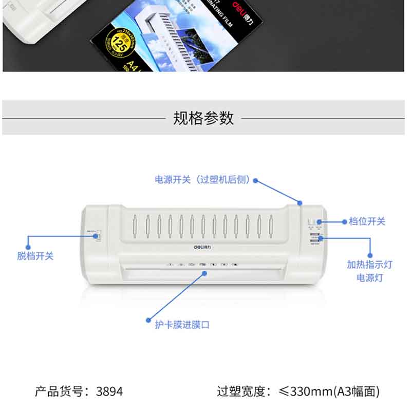 得力(deli) 3894 A3照片塑封機(jī) 辦公家用相片過(guò)塑機(jī)過(guò)膠機(jī)封膜機(jī)