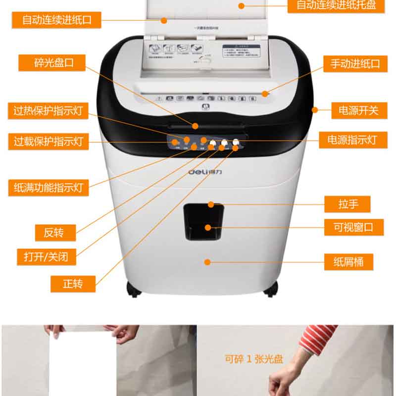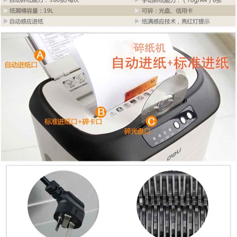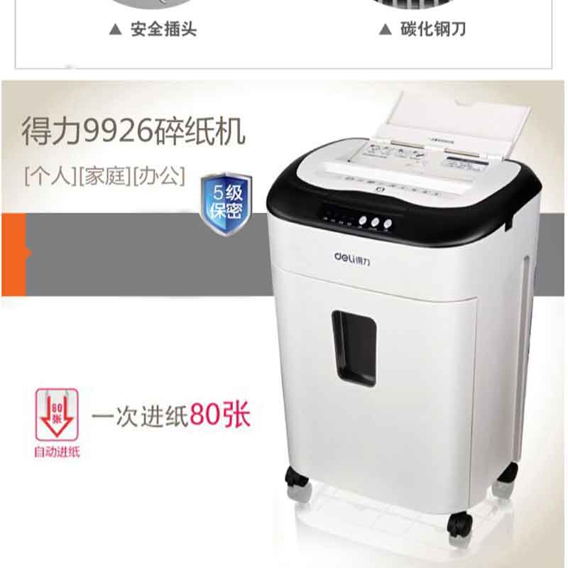 得力(deli) 9926 高端雙入紙口碎紙機4級保密 80張自動入紙長時間辦公碎紙機 (A4)