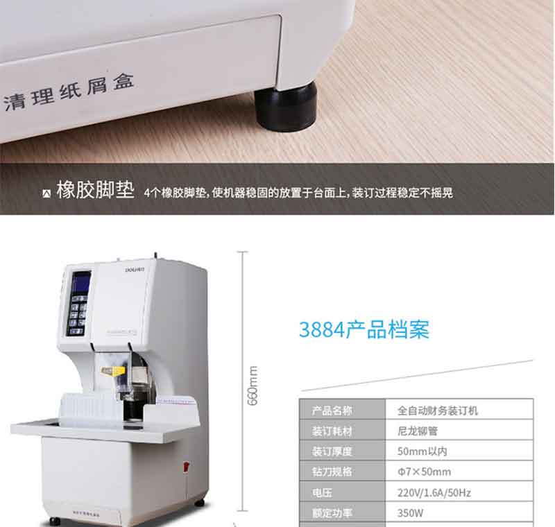 得力(deli) 3884 全自動財務(wù)憑證裝訂機(jī) 檔案打孔機(jī) 一鍵操作 裝訂厚度:31—50mm
