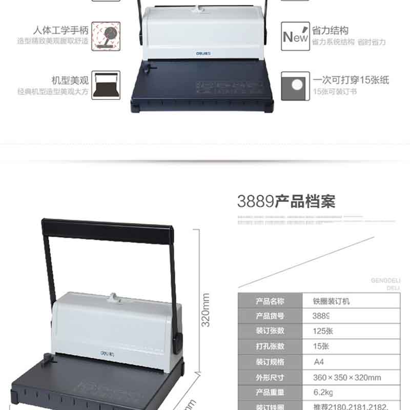 得力(deli) 3889 雙線鐵圈文件裝訂機(jī) 34方孔掛歷/臺(tái)歷打孔機(jī)