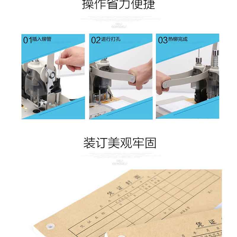 得力(deli) T502 財(cái)務(wù)憑證裝訂機(jī)智能型憑證單據(jù)打孔機(jī) 智能省力手動(dòng)型(白灰)