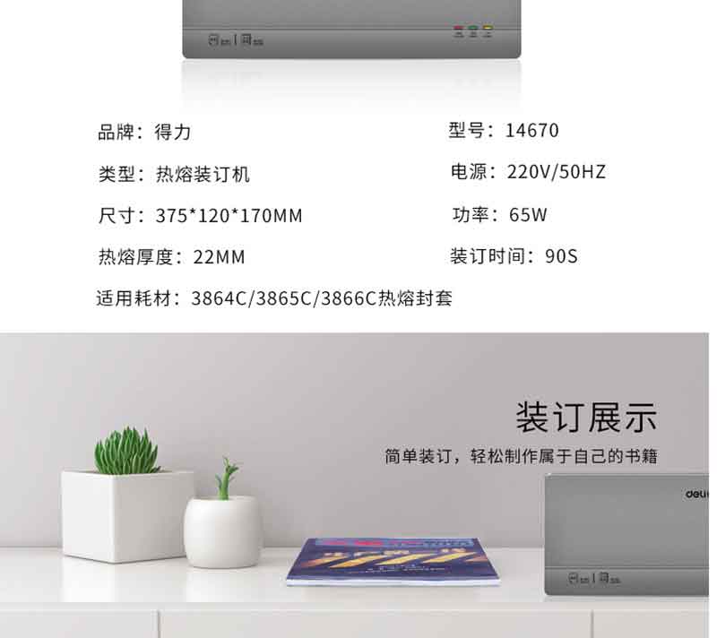 得力(deli) 14670 熱熔裝訂機(jī) 合同/標(biāo)書膠裝機(jī)