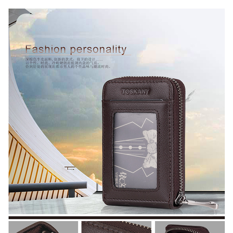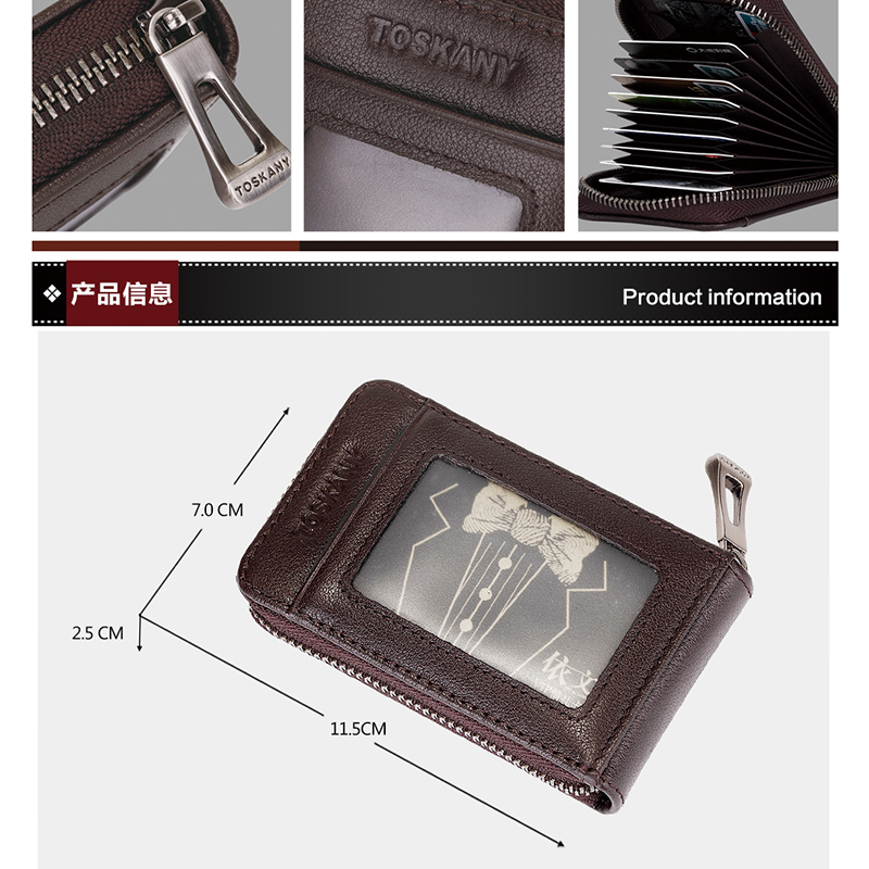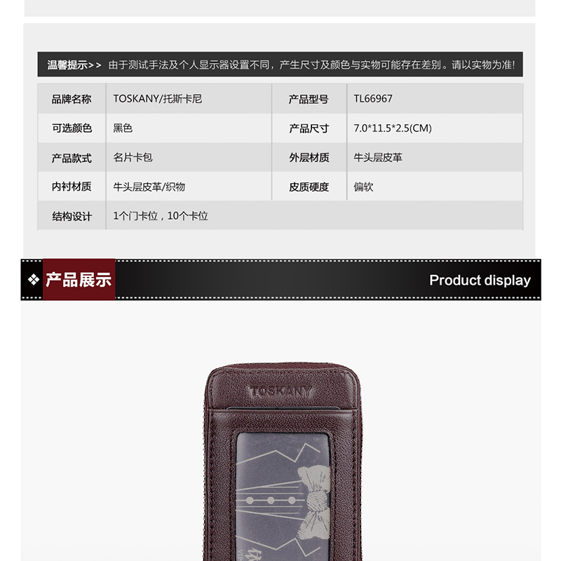 托斯卡尼(TOSKANY) TL66967 多功能大容量拉鏈名片卡包 頭層牛皮