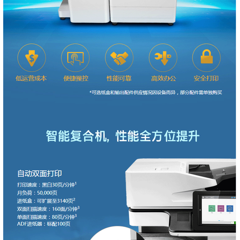 惠普新品!超低運(yùn)營成本!打印速度:30頁/分鐘,ADF容量:100頁 ?