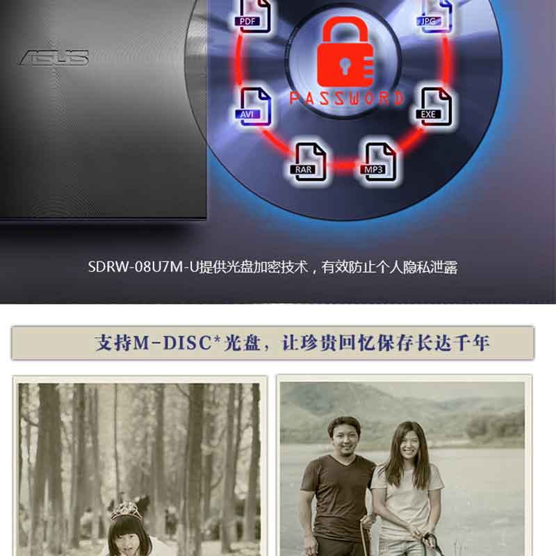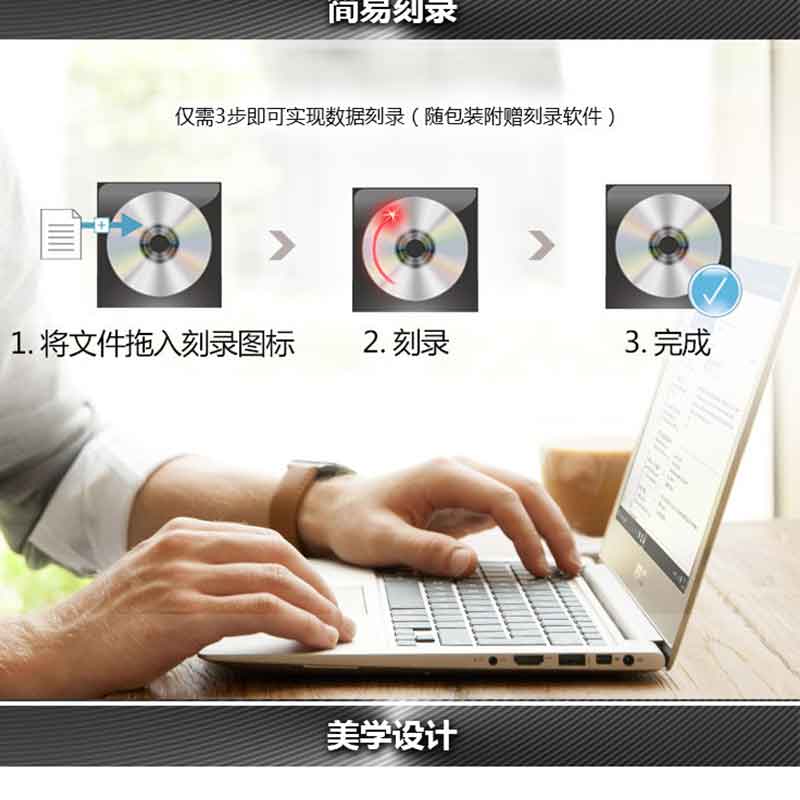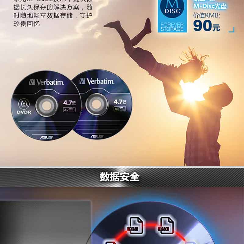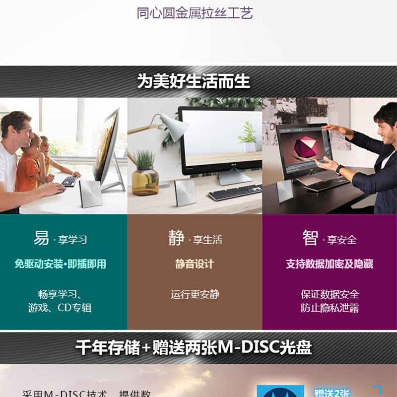 金屬拉絲工藝,支持M-DISC存儲,三步刻錄,即插即用,兩張M-DISC光盤! ?