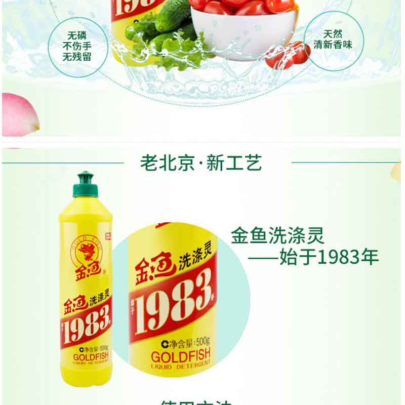 金魚(GoldFish) 洗潔精去油 去異味 護(hù)手洗滌靈500g/瓶