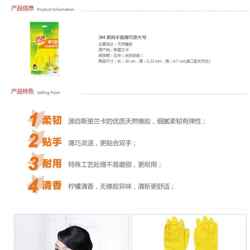 3M 小號 思高薄巧型手套 大中小號可選 家務(wù)手套 塑膠手套洗碗手套
