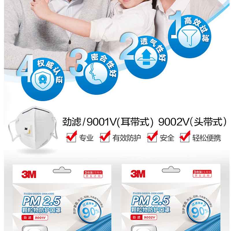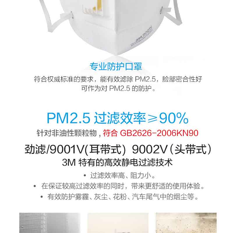 3M 9001V 防顆粒物口罩(25只裝)防PM2.5 /防霧霾/耳戴式 獨立單片裝