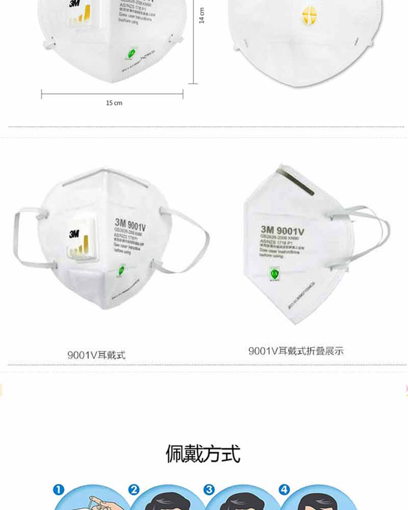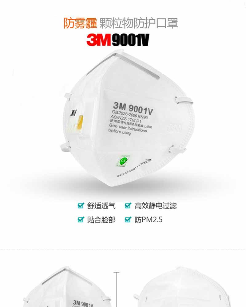 3M 9001V KN90 耳戴式帶呼氣閥防顆粒物口罩 防塵 防霧霾口罩(3只/包)