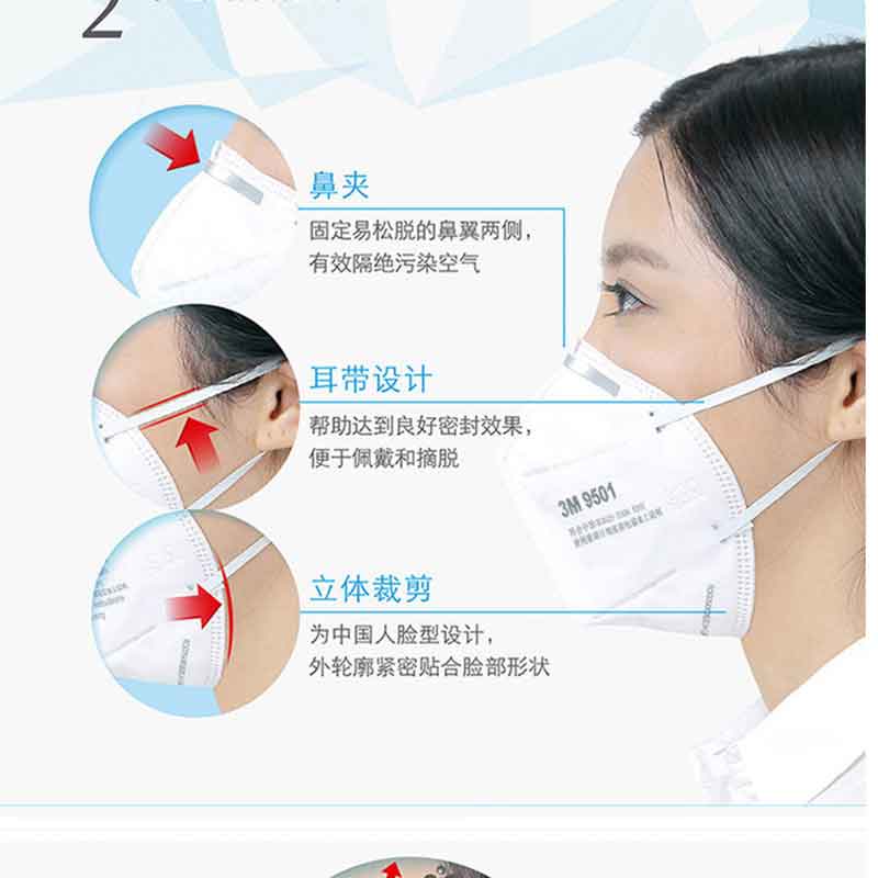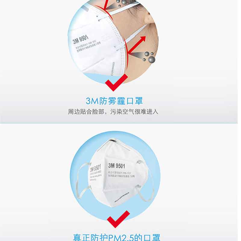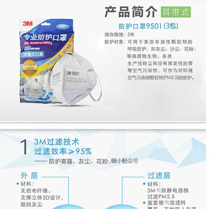 3M 9501 KN95 耳戴式防顆粒物口罩 防塵 防霧霾口罩(5只/包)