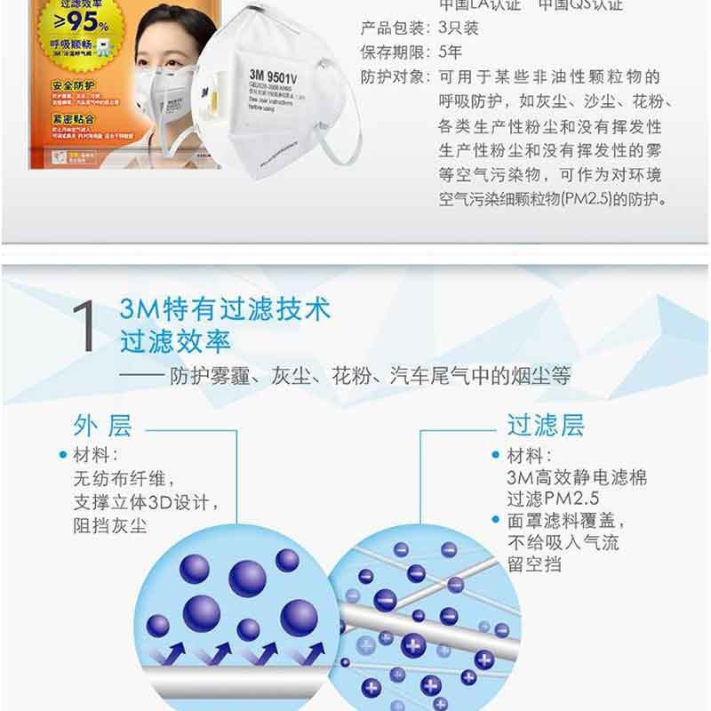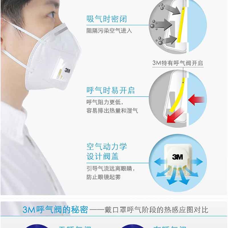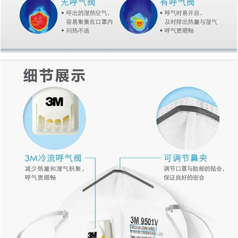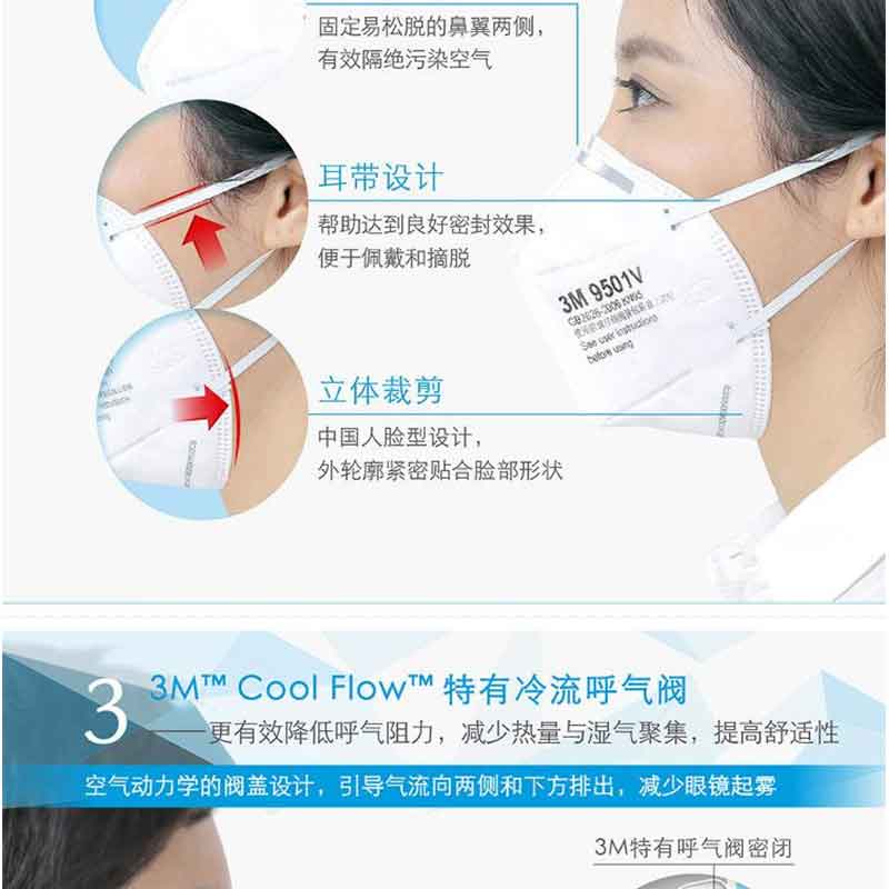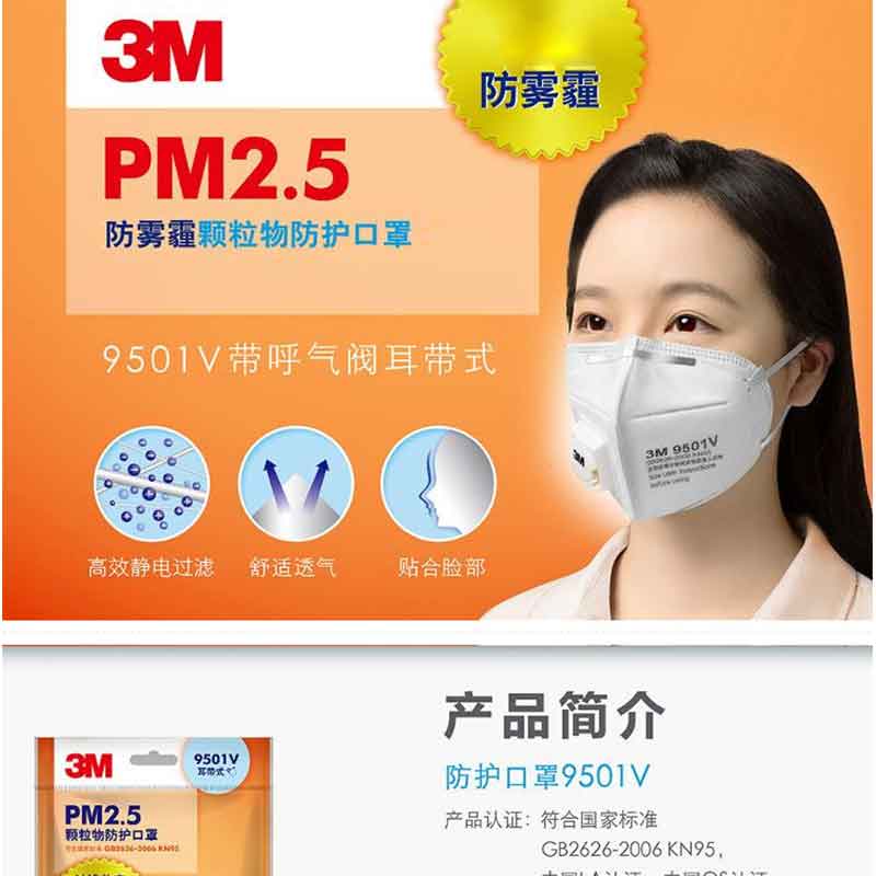 3M 9501V KN95 防霧PM2.5 防塵 男女舒適透氣 耳戴式 呼吸閥(3只/包)精包裝
