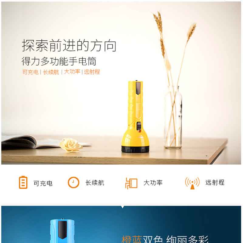 得力(deli) 3663 LED充電式手電筒(混)(只)24*9*6cm 500mAh