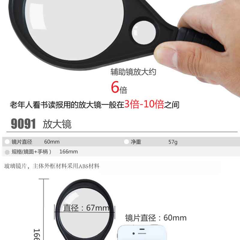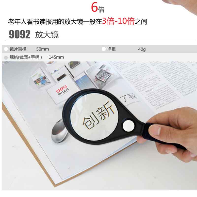 得力(deli) 9092 實用放大鏡(帶輔助放大鏡) Ф50mm