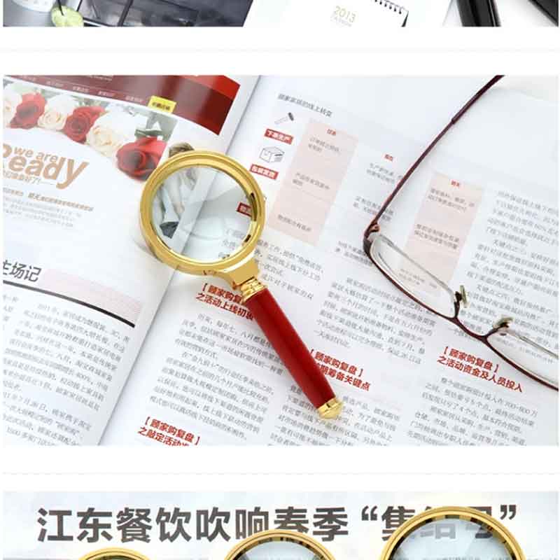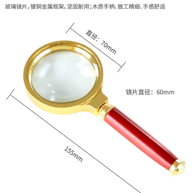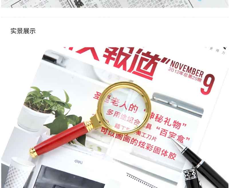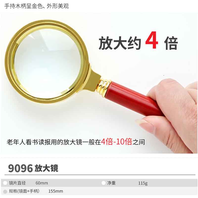 得力(deli) 9096 直徑60mm 復(fù)古金屬框木質(zhì)手柄架放大鏡