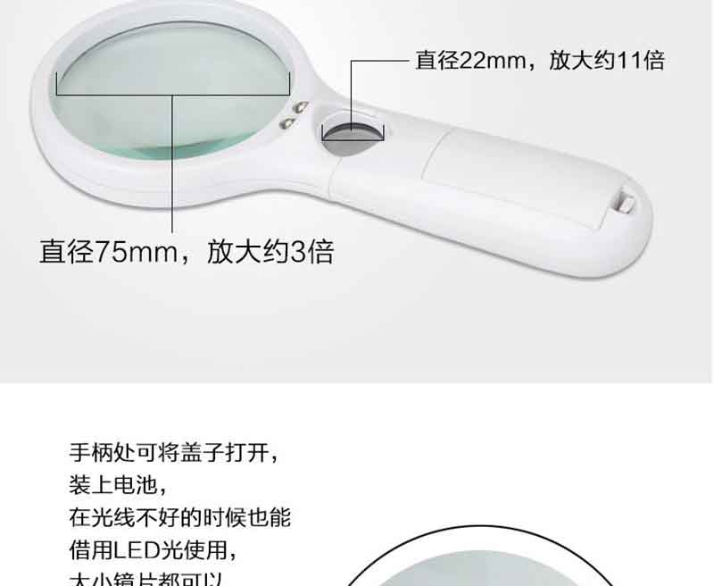 得力(deli) 9098 放大鏡 LED燈 直徑65mm 3.5倍