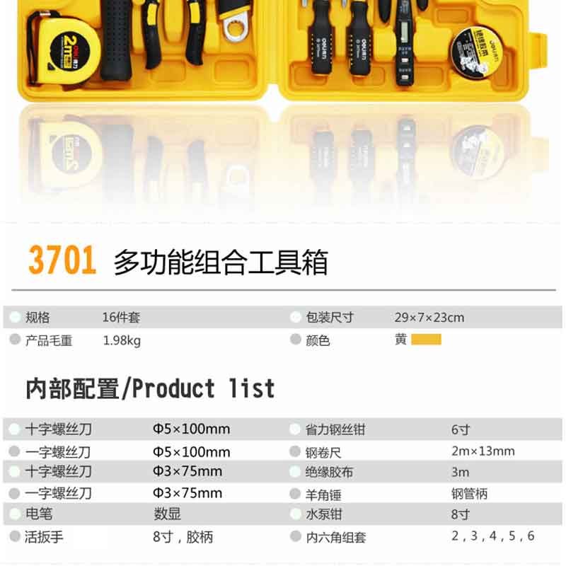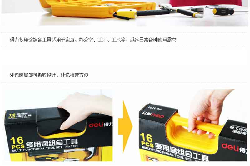 得力(deli) 3701 多功能組合工具箱/工具套裝 16件套