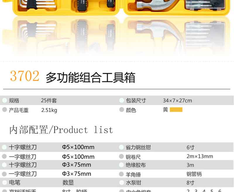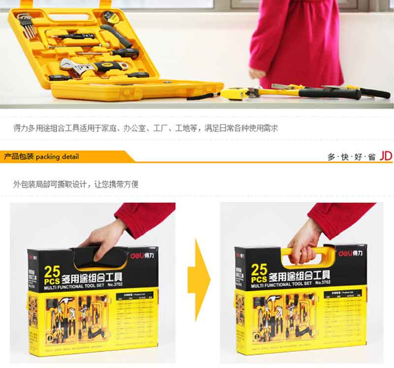 得力(deli) 3702 多功能組合工具箱/工具套裝 25件套