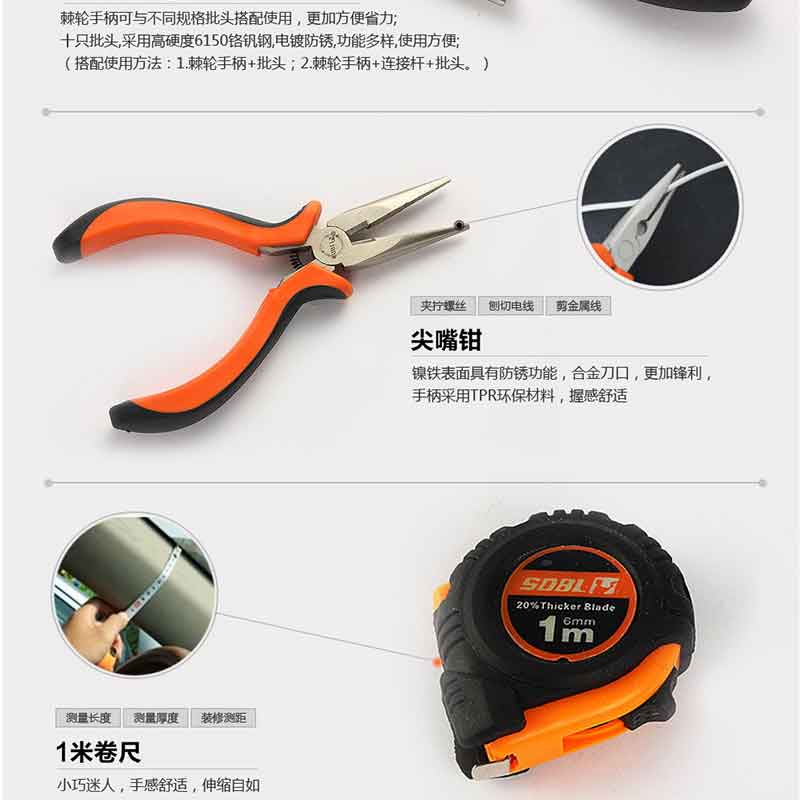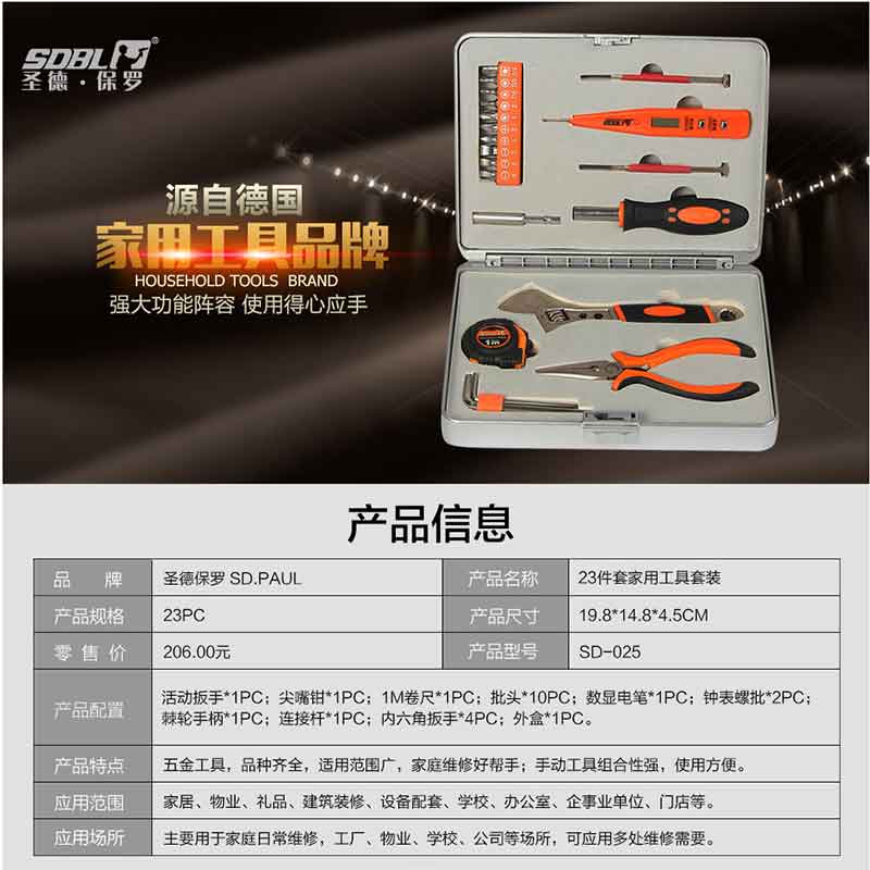 圣德保羅(SDBL) SD-025 23件套迷你家用工具組合 含米尺螺絲刀尖嘴鉗套筒