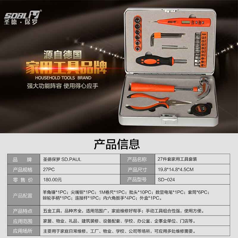 圣德保羅(SDBL) SD-024 27件套迷你工具組合 修理套裝 五金工具箱
