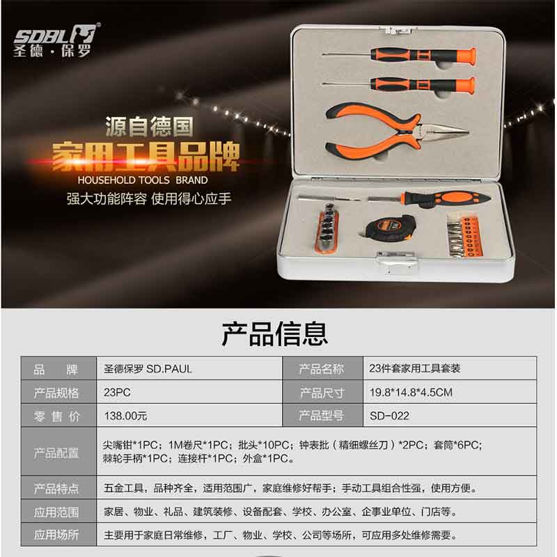 圣德保羅(SDBL) SD-022 23件套迷你手動工具組合 家用工具套裝 工具包