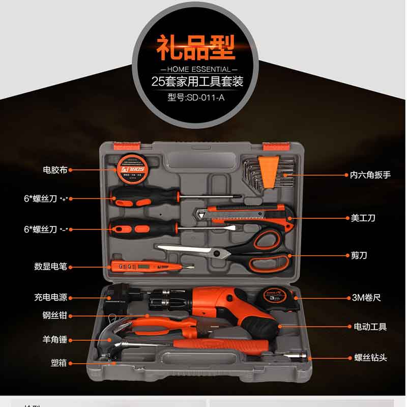 圣德保羅(SDBL) SD-011-A 25件套禮品型工具組合含電鉆 手動工具電動工具箱