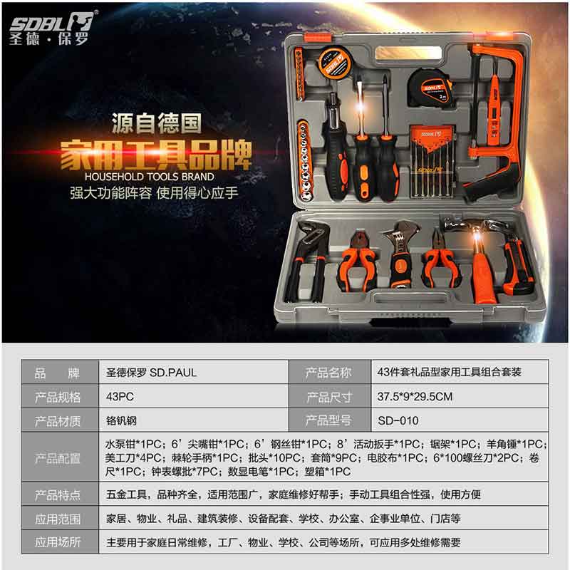 圣德保羅(SDBL) SD-010 43件套禮品型工具組合 家用車用五金手動維修工具箱