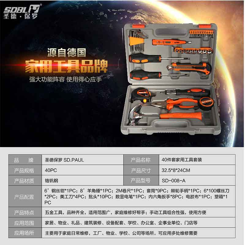 圣德保羅(SDBL) SD-008-A 40件套實(shí)用禮品型工具組合 工具箱鉻釩鋼家用五金