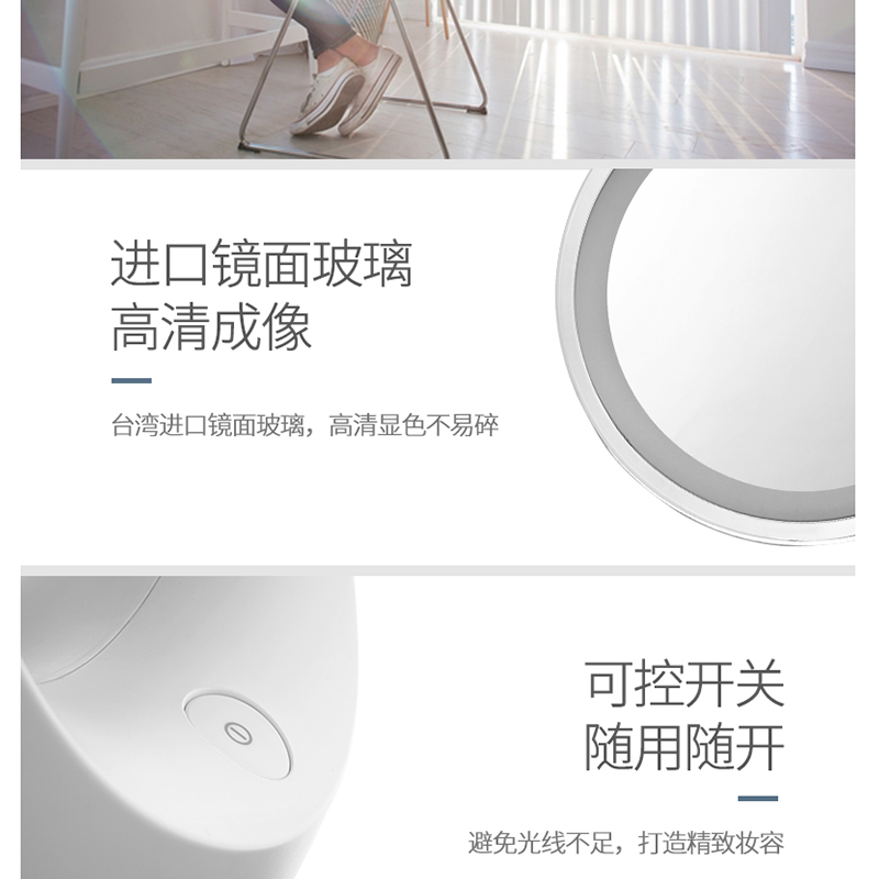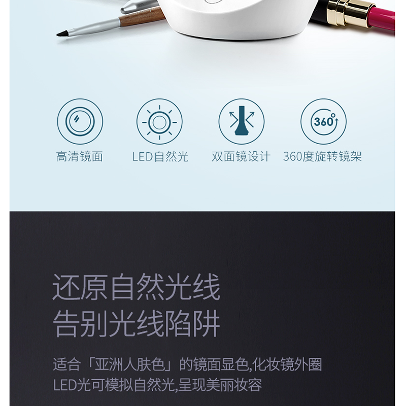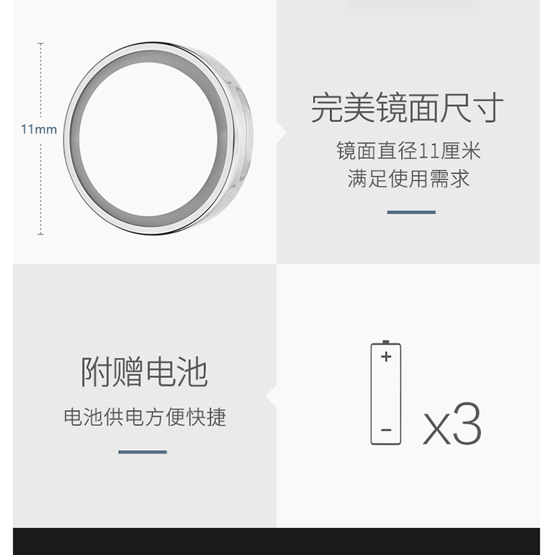 鏡面直徑11厘米,滿足日常護(hù)膚化妝需求 ?