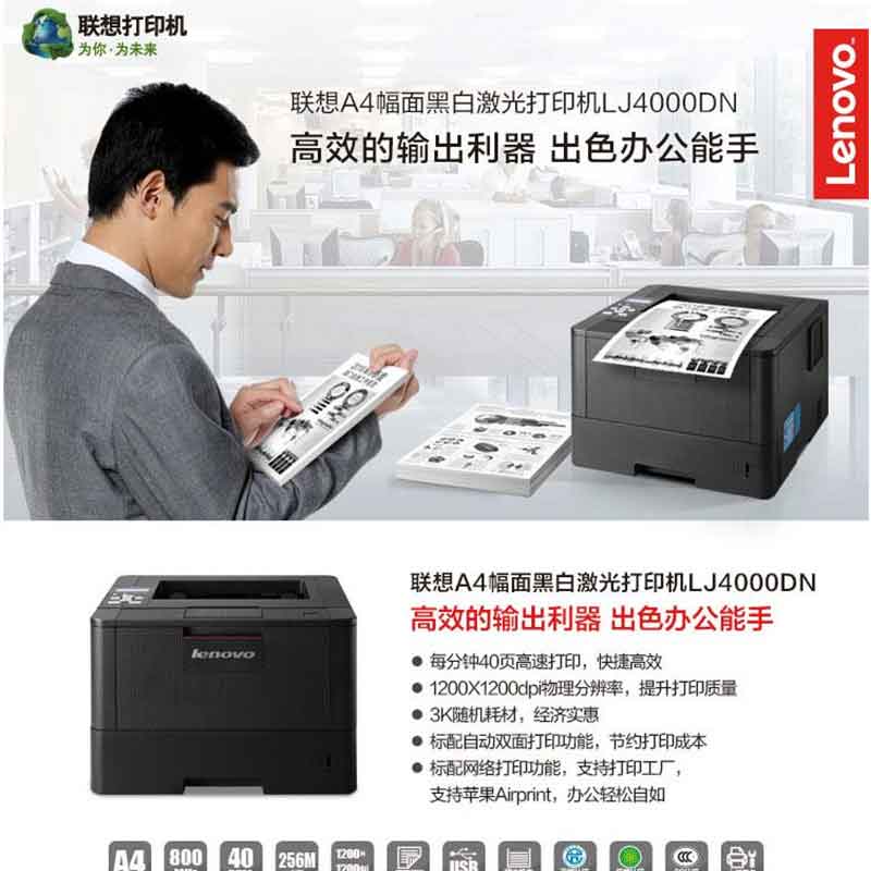 聯(lián)想(Lenovo) LJ4000DN 黑白激光打印機 A4幅面 自動雙面打印
