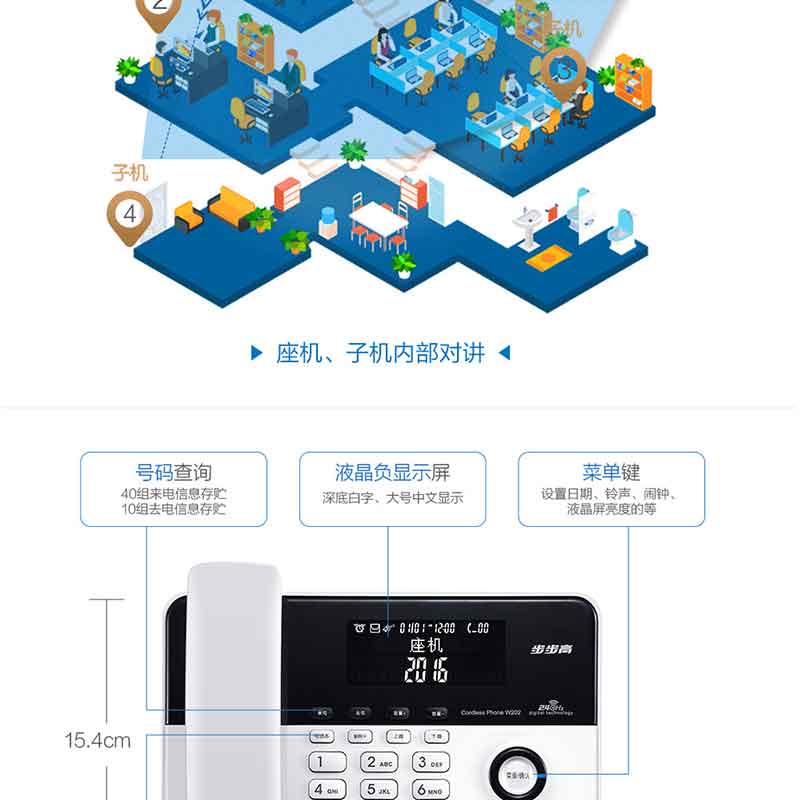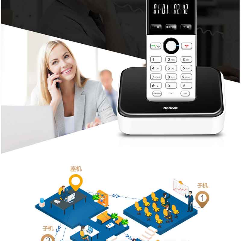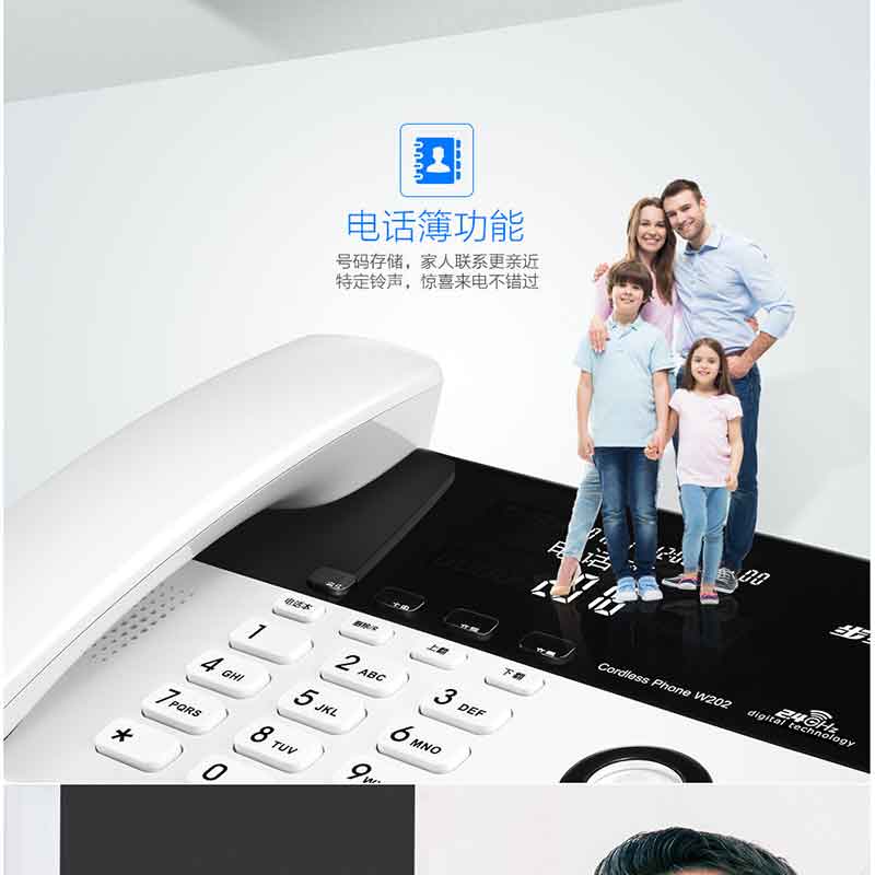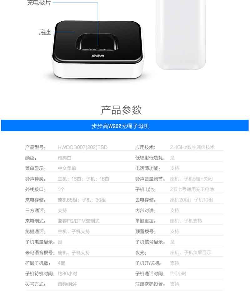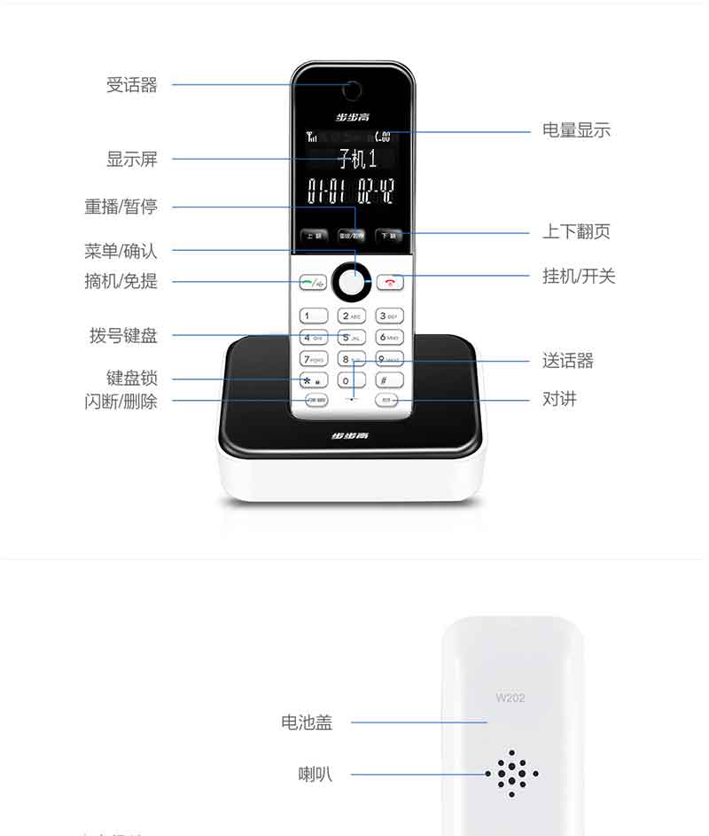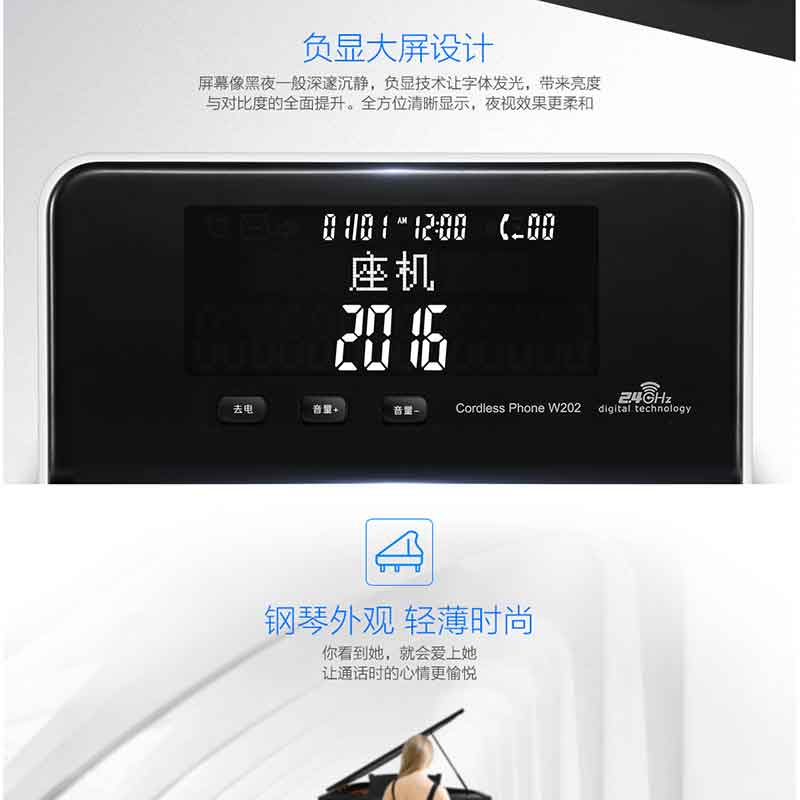 步步高(bbk) W202 高端旗艦 數(shù)字無繩電話機 子母機座機 鋼琴外觀/亮面拋光/負顯大屏科技/中文菜單/三方通話
