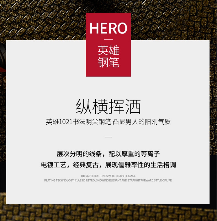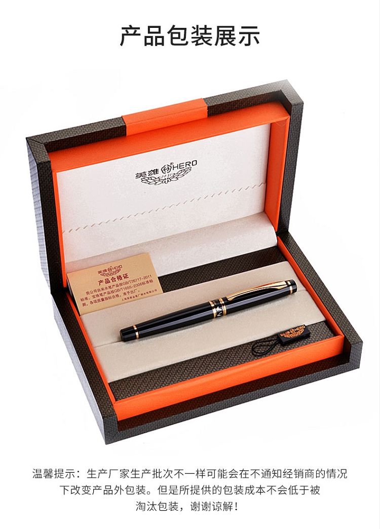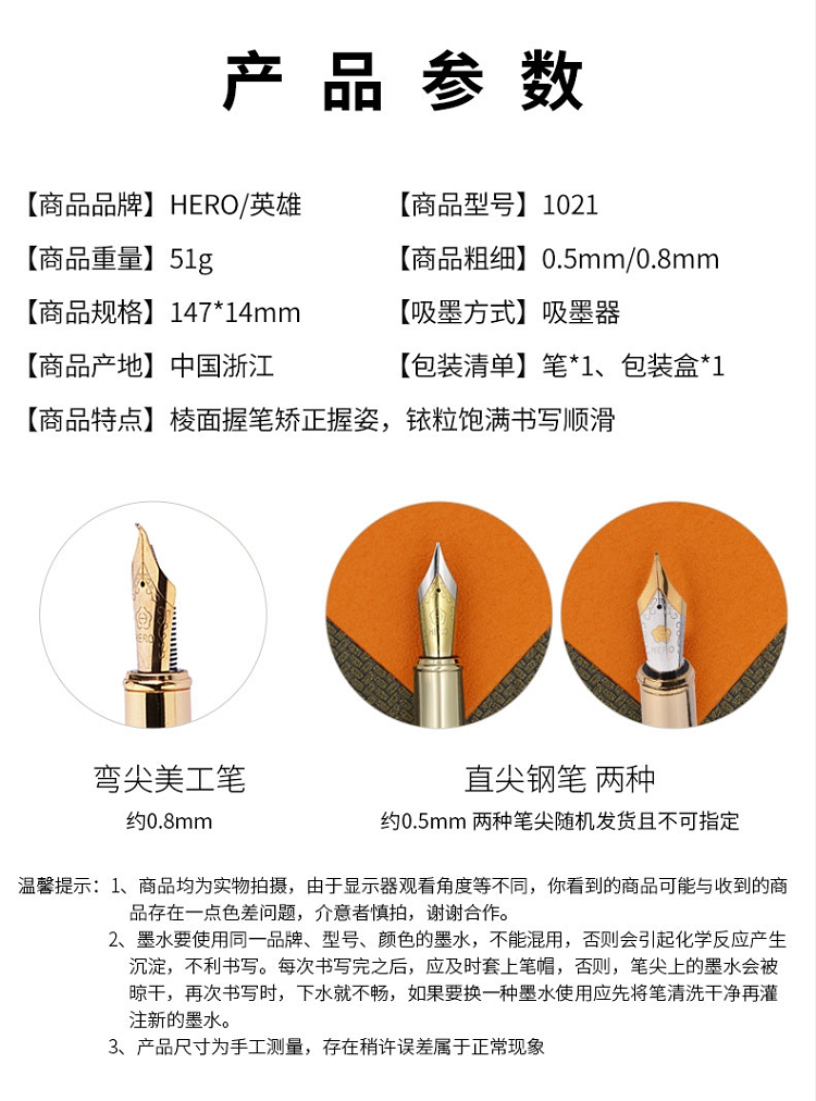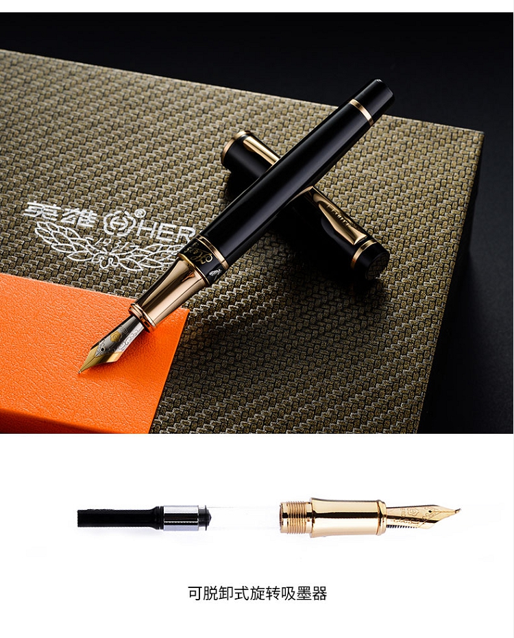 英雄(HERO) 1021 黑色銥金鋼筆墨水筆明尖
