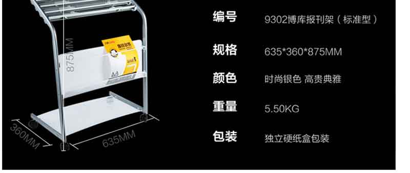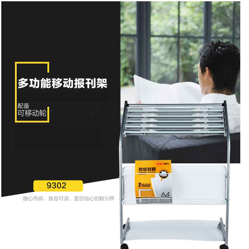 得力(deli) 9302 六層鋁合金夾條報紙架報刊架 雜志展示架635*360*875mm