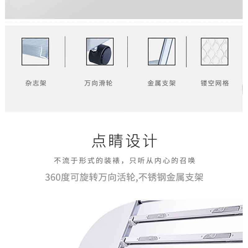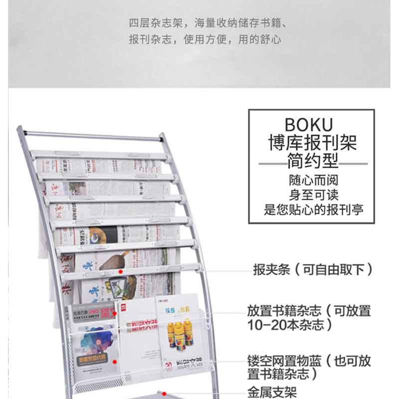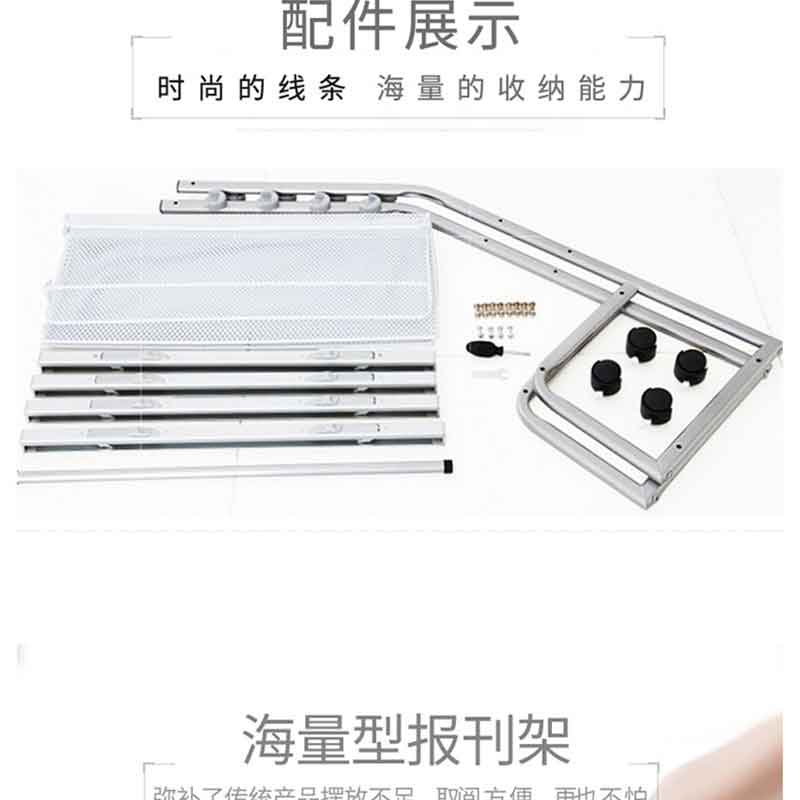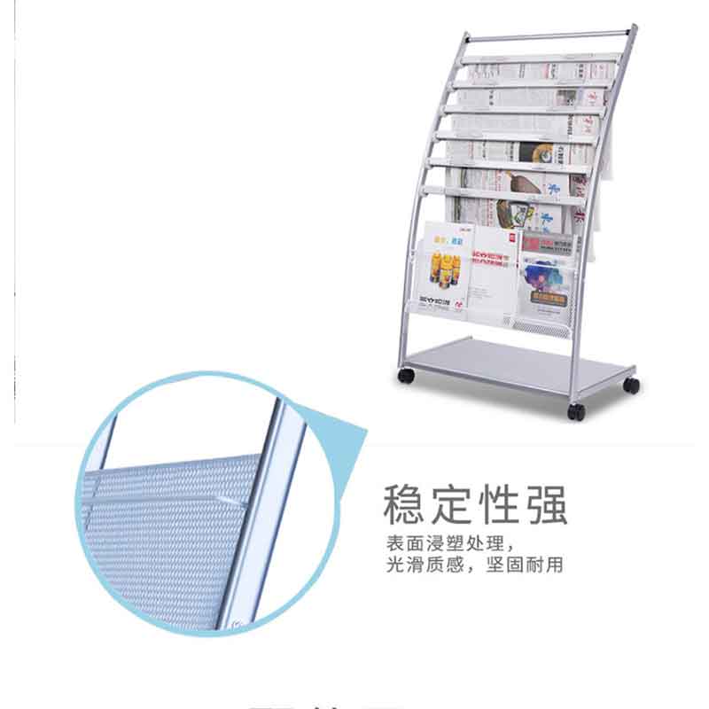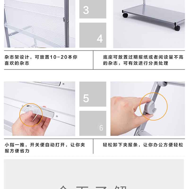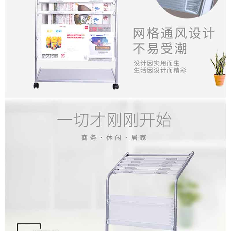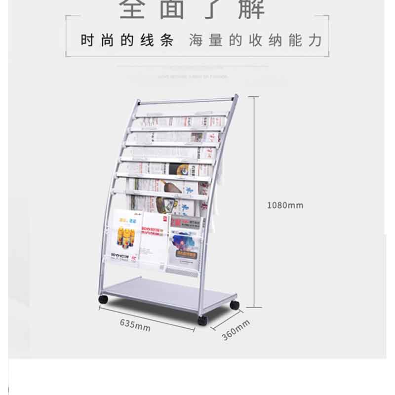 萬向活輪,隨意移動(dòng)。六層報(bào)紙展示架,搭配單層雜志資料宣傳架,底層亦可收納。 ?