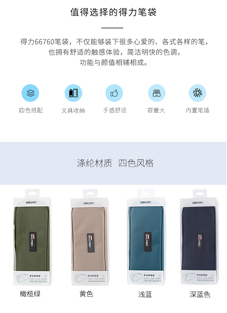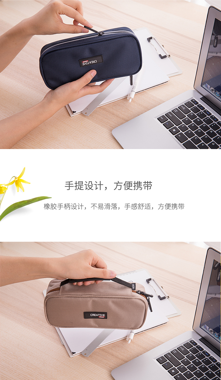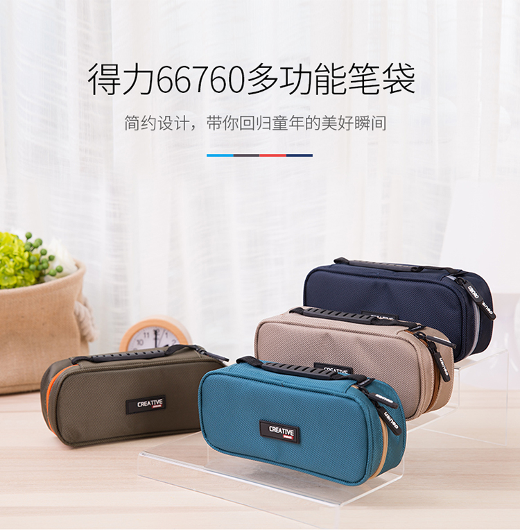 得力(deli) 66760 大容量手提筆袋/多功能牛津布鉛筆收納袋 深海藍(lán)