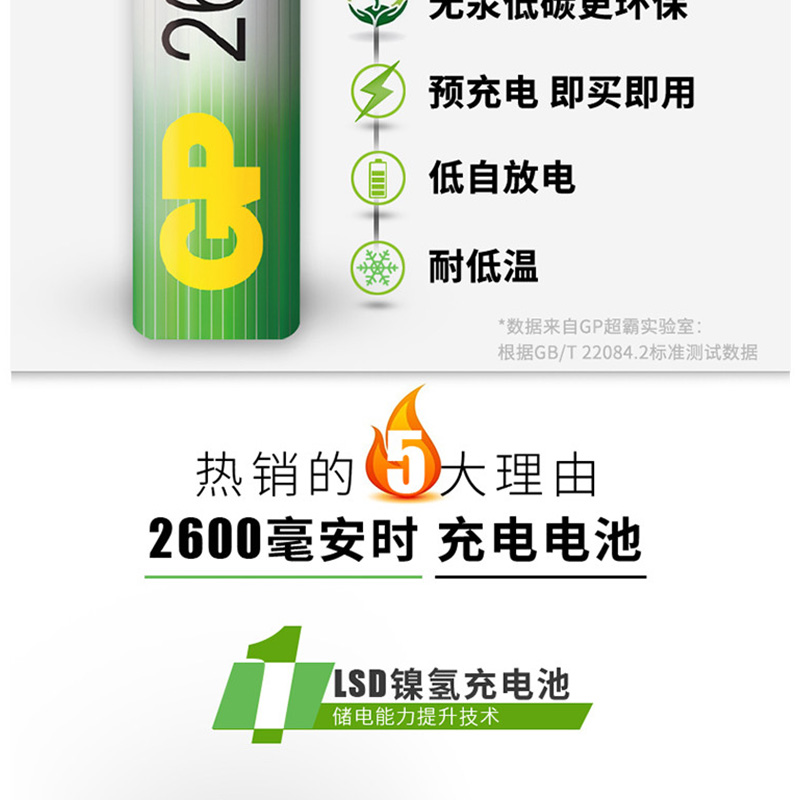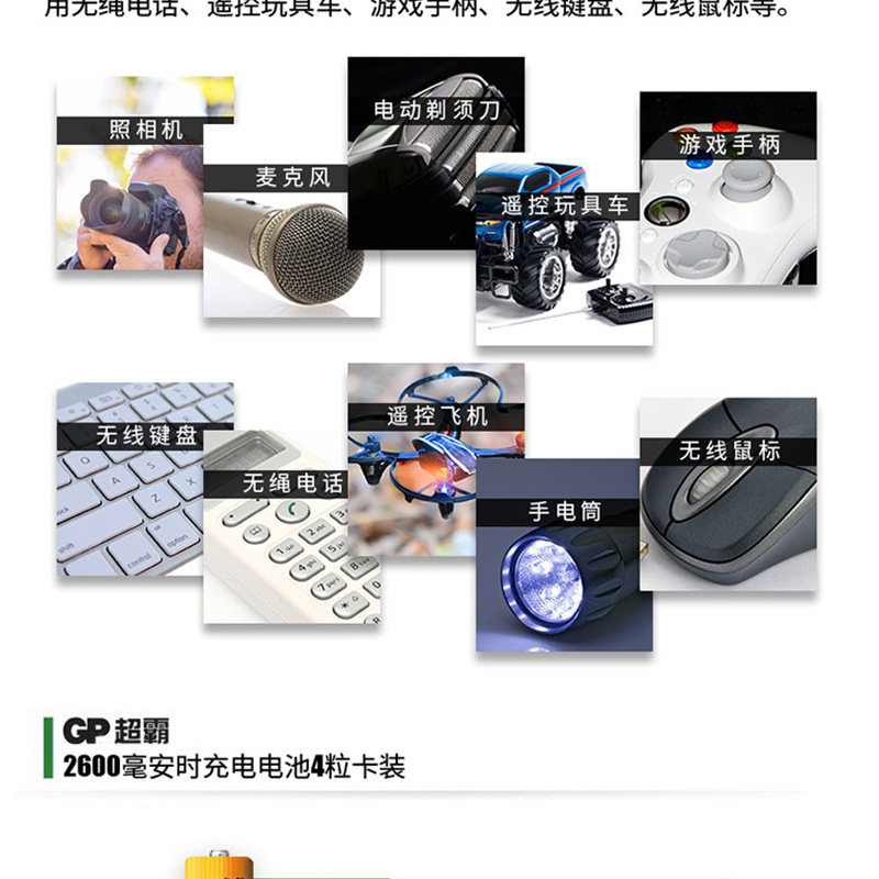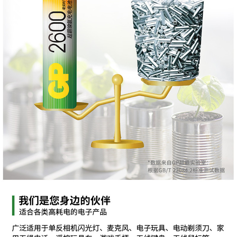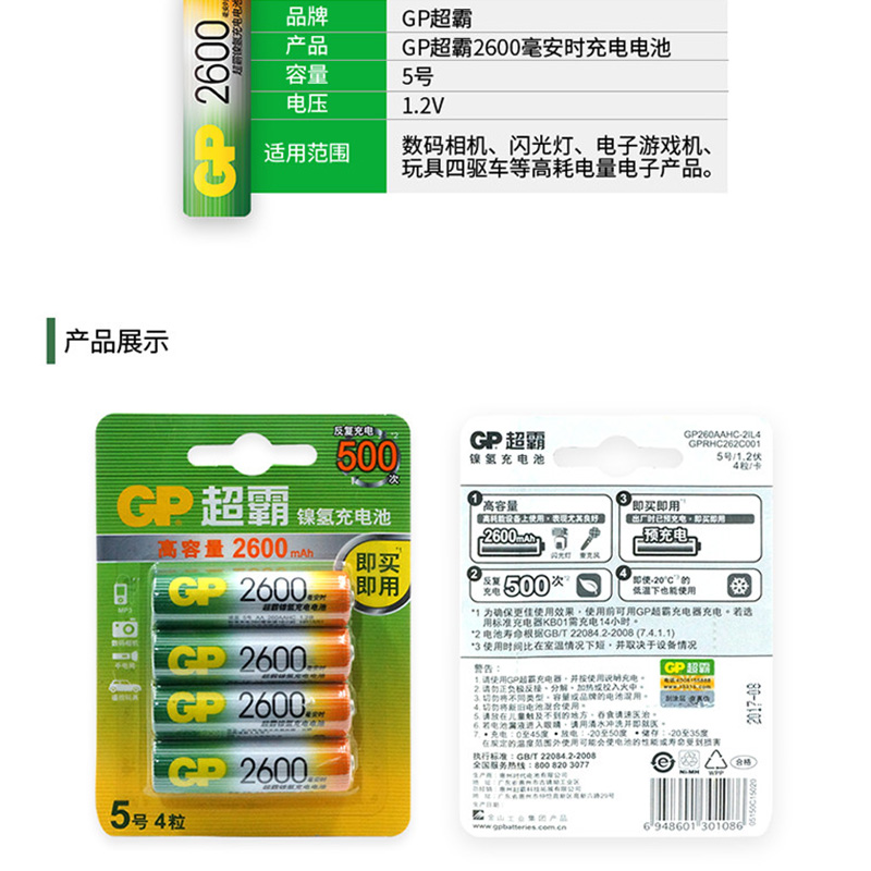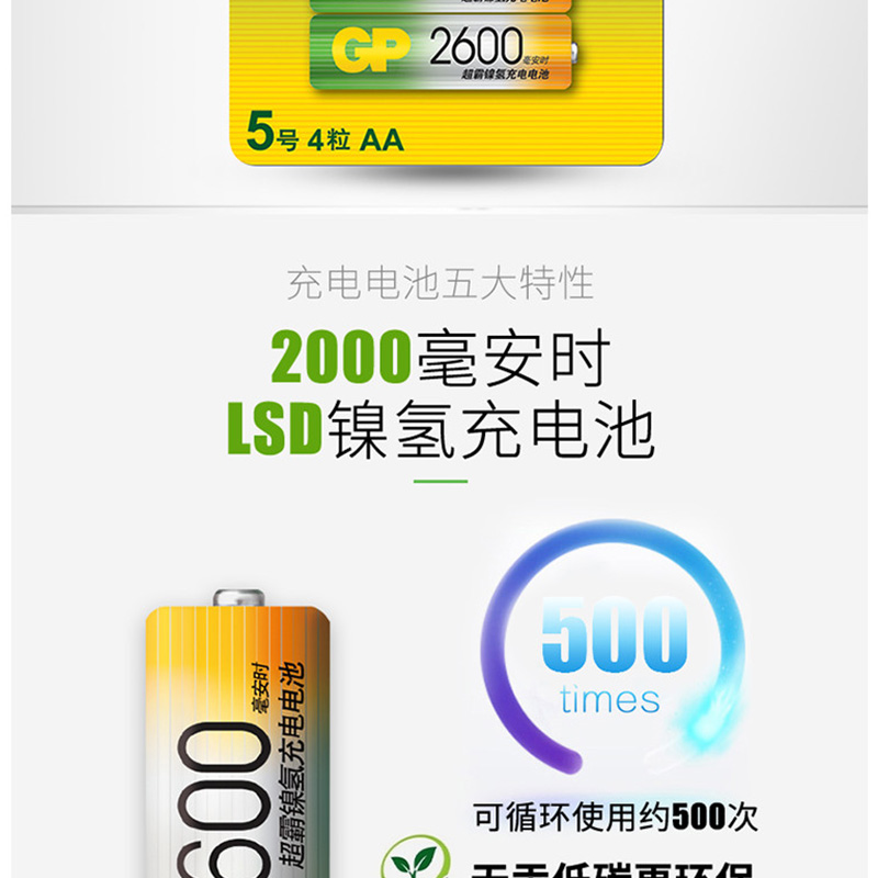 超霸(GP) GP260AAHC-2IL4 充電電池5號(hào)4節(jié)裝電話遙控器相機(jī)玩具體重秤血壓儀2600毫安AA