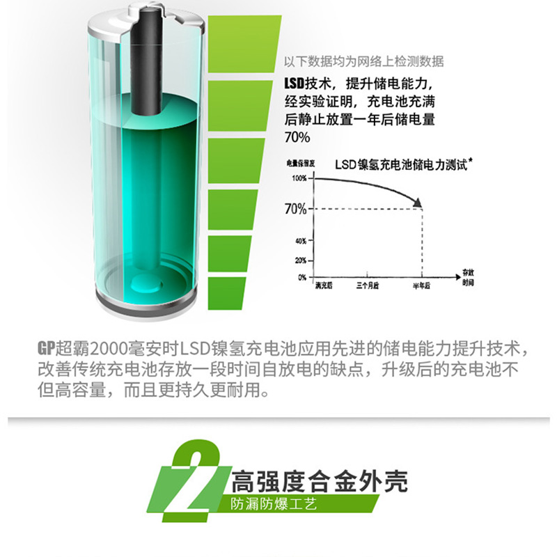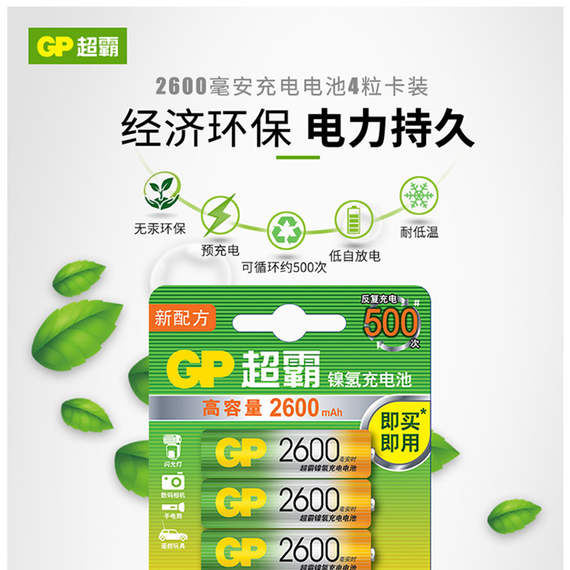 超霸(GP) 260AAHC-2IL2 充電電池5號(hào)2節(jié)裝電話(huà)遙控器相機(jī)玩具體重秤血壓儀2600毫安 AA